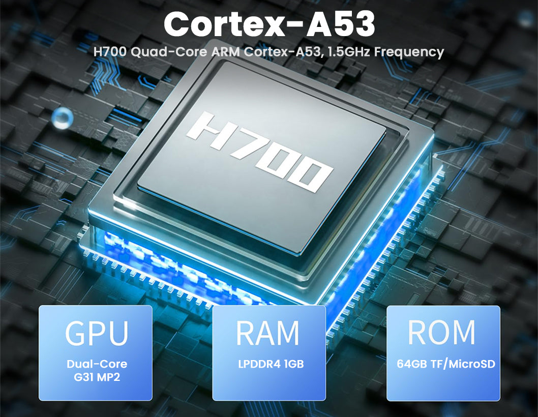 H700 quad-core ARM Cortex-A53, 1.5GHz frequency