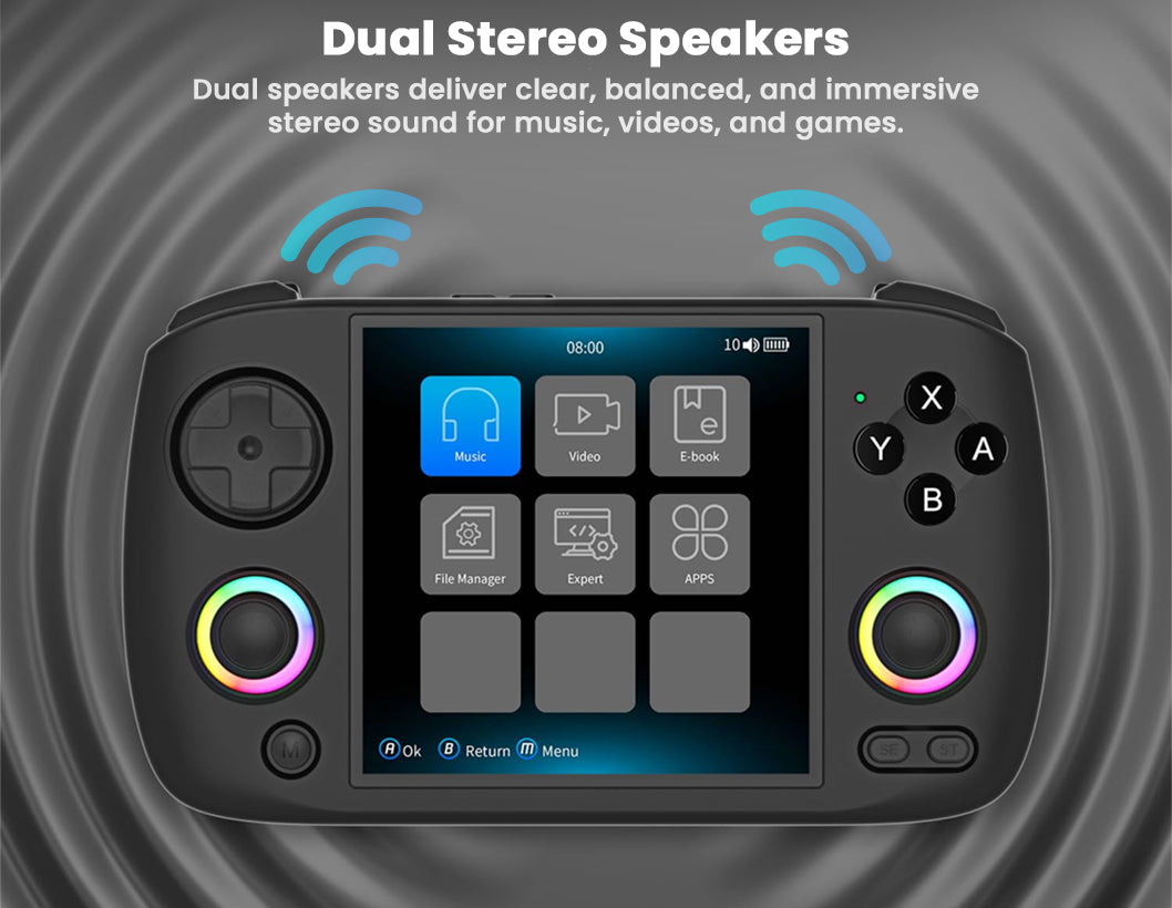 Featuring 2.4/5G WiFi, Bluetooth 4.2, and HDMI output, the RG CubeXX allows wireless multiplayer gaming, controller pairing and TV connection for a bigger screen experience. Its high-fidelity speakers and vibration motor further enhance immersion, delivering rich sound and tactile feedback during gameplay.