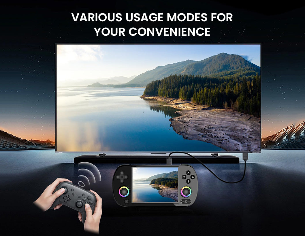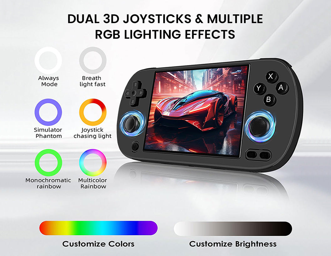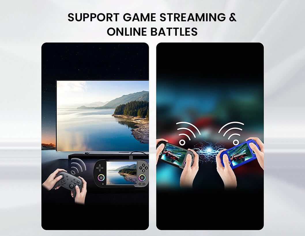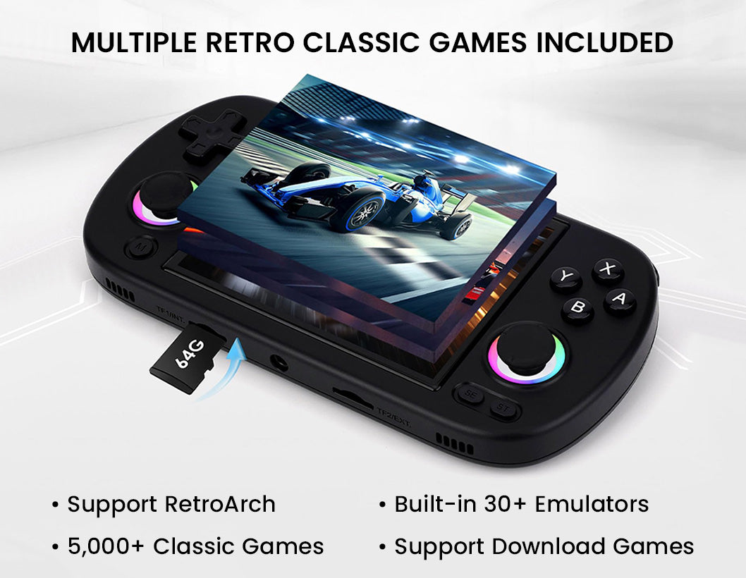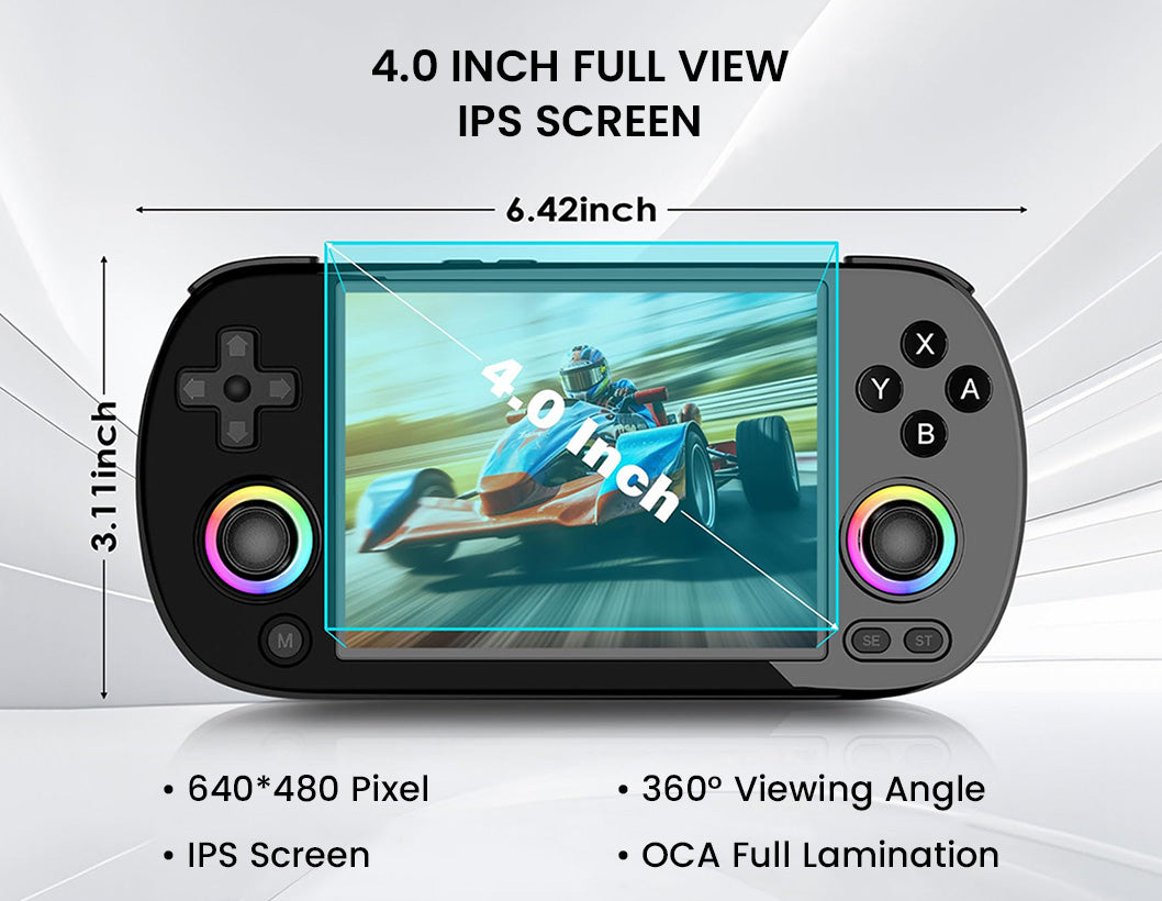 The ANBERNIC RG40XX H handheld game console combines retro nostalgia with modern performance in a compact design. Its 4.0-inch IPS laminated display delivers sharp, vibrant visuals, while the H700 quad-core CPU, Mali-G31 GPU, and 1GB RAM ensure smooth emulation across 30+ systems. Preloaded with 64GB of classic titles and expandable up to 512GB, it offers endless gaming possibilities. With WiFi, Bluetooth, TV-out, and Moonlight streaming, you can enjoy solo play, multiplayer fun, or even stream PC games on the go. A 3200mAh Li-polymer battery provides up to 6 hours of play with USB-C fast charging, while extras like RGB joystick lighting, hi-fi speakers, vibration feedback, and multimedia support make it more than just a retro handheld—it’s a portable entertainment powerhouse.