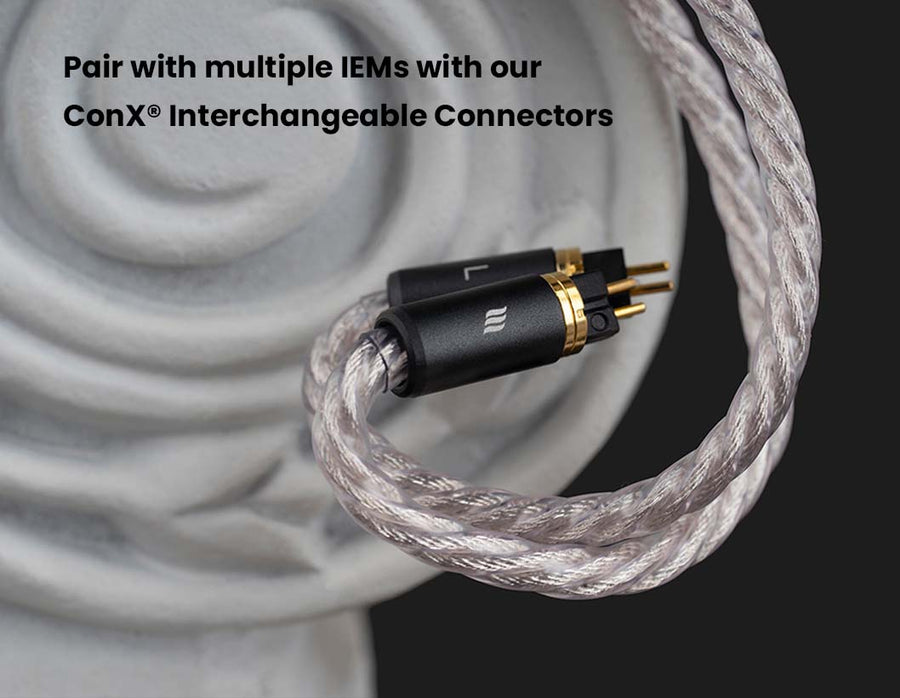 Effect Audio introduced the Signature Series II, a major update two years after the first series set industry benchmarks. The Effect Audio Cadmus II, a high-performance IEM upgrade cable, is designed to deliver precise and reliable audio quality. Its Copper central solid-core structure ensures stable signal transmission with minimal interference, resulting in clear and accurate sound reproduction. The 26AWG 8-core braided construction enhances low-frequency performance, offering impactful sub-bass, rich tonal balance, and a wide, immersive soundstage. Durability is ensured with EA Ultra Flexi™ insulation, while EPO Pro ergonomic optimization provides flexibility and comfortable handling for daily use. The modular ConX connector system makes it compatible with a wide variety of IEMs, offering adaptability across multiple devices. Each Cadmus II cable is handcrafted with precision, combining advanced engineering with a forward-thinking design to meet the demands of modern audiophiles.