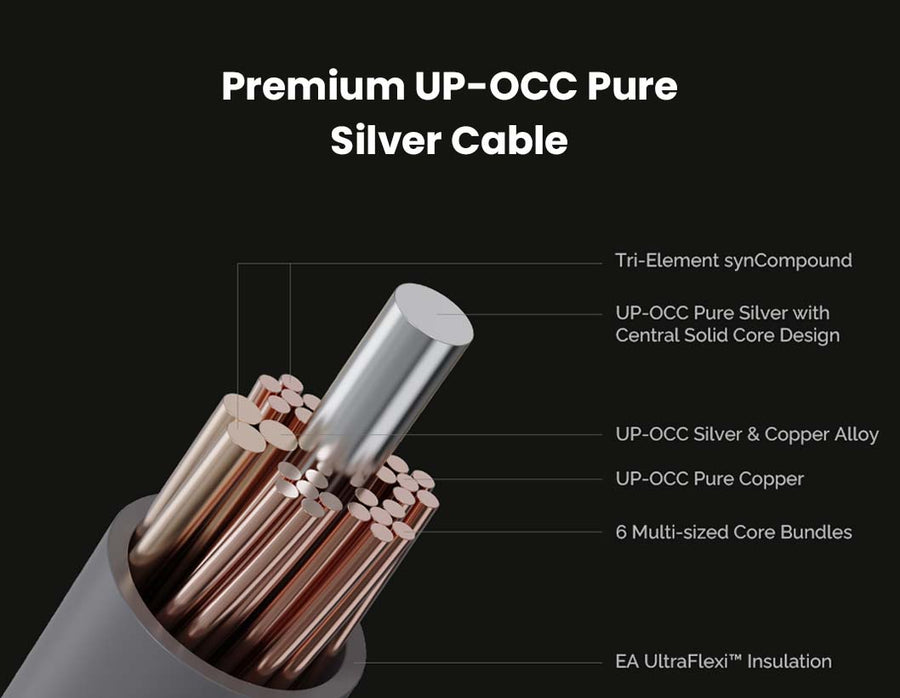Built with UP-OCC pure silver and a central solid core design, the Eros S II introduces the advanced Solid Core Technology from the CODE Series. This design replaces multi-stranded conductors with a single, seamless wire, ensuring lower resistance and minimal signal loss at high frequencies, delivering a cleaner and more consistent audio experience.