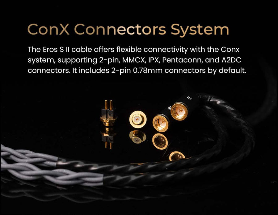 The Eros S II features ConX connectors on the IEM side. This modular design allows you to easily switch between different connector types (MMCX, P