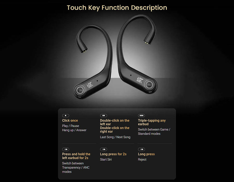 • 1 x Pair of KZ AN01 Wireless Earhook Adapters (Left and Right)