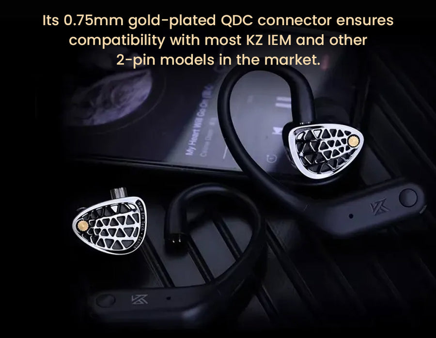The KZ-AN01 features a 0.75mm gold-plated QDC connector that ensures compatibility with most KZ earphones and other 2-pin models in the market. This wireless IEM adapter also supports multipoint connectivity, allowing users to connect to multiple devices simultaneously. Intuitive touch controls enable easy management of playback, track selection, and mode switching. The eco-friendly packaging reflects KZ's commitment to sustainability, appealing to environmentally conscious consumers.