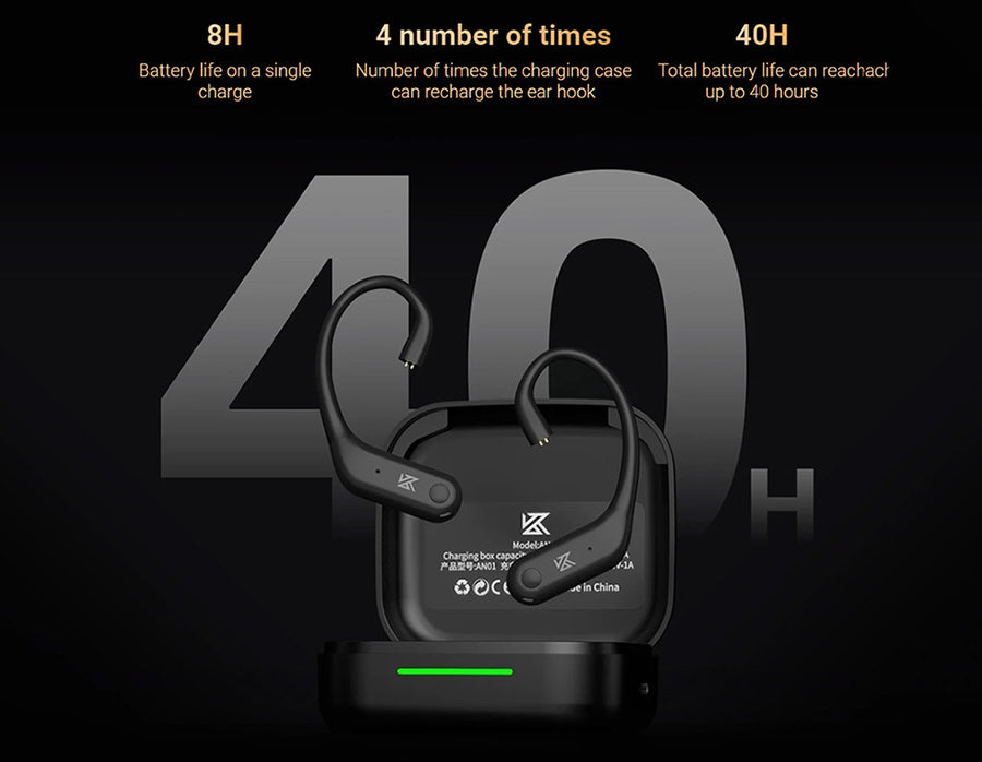 Featuring a 4.5-gram lightweight earhook design crafted from skin-friendly Thermoplastic Polyurethane (TPU) material, the AN01 ensures a comfortable and stable fit for all-day use. The charging case, equipped with a 400mAh high-capacity battery, extends the total listening time to up to 40 hours, making it ideal for long trips and daily commutes. The earhooks themselves provide approximately 8 hours of playtime on a single charge, ensuring extended use without frequent recharging.