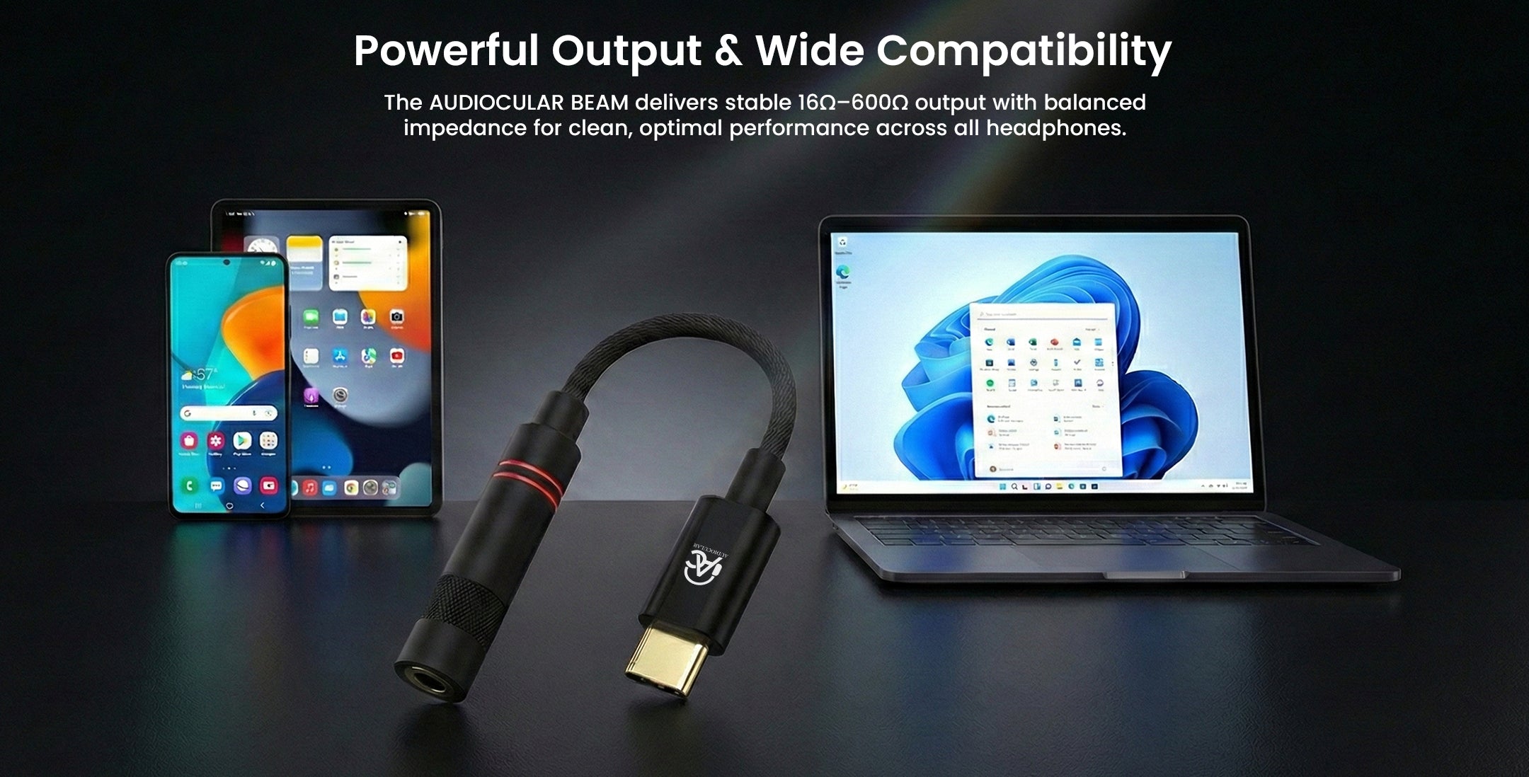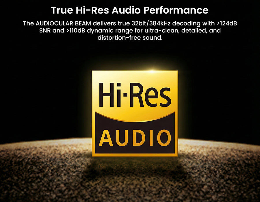 AUDIOCULAR BEAM is a premium portable USB-C digital-to-analog converter (DAC/AMP) meticulously engineered for audiophiles, gamers, and content creators who seek uncompromised sound quality. Equipped with the advanced CX31993 DAC and MAX97220 amplifier, it transforms your device’s digital audio into rich, high-resolution analog output with deep bass, smooth mids, and crystal-clear highs. Supporting 32bit/384kHz PCM decoding, the AUDIOCULAR BEAM DAC dongle ensures pure, lossless playback that reveals every detail with remarkable precision and fidelity. Combining advanced decoding technology, robust amplification, and refined design, it sets a new benchmark for compact digital-to-analog converters and premium Type-C audio converters, delivering a studio-grade listening experience in a portable, plug-and-play form.