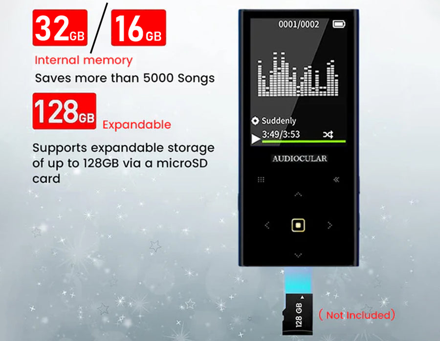 Experience pure audio bliss on the go with the AUDIOCULAR M21 Portable Mp3 Player. With 16/32GB of internal storage, Bluetooth connectivity, and a vibrant 2.4-inch TFT color screen, Equalizer, enjoy seamless navigation and amazing sound like never before. Upgrade your music experience with style and convenience.