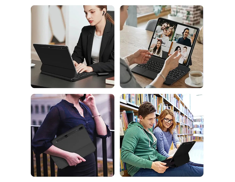 Transform your Samsung Galaxy Tab into a sleek, versatile workstation with the M11P-S9 Keyboard Case. Designed for the Samsung Galaxy Tab S9 FE 10.9-inch 2023 (SM-X510, SM-X516B), Tab S9 11-inch 2023 (SM-X710, SM-X716B), Tab S8 11-inch 2022 (SM-X700, SM-X706, SM-X706B, SM-X706U, SM-X706N), and Tab S7 11-inch 2020 (SM-T870, SM-T875, SM-T876B), this case offers a perfect blend of productivity, protection, and style. Whether you’re working, studying, or creating, the M11P-S9 Keyboard Case adapts to your needs with adjustable viewing angles, a responsive trackpad, vibrant backlighting, and full-body protection—making it the ultimate companion for productivity and portability. Please confirm your tablet model before purchase to ensure a secure and precise fit. (Tablet and S Pen not included.)