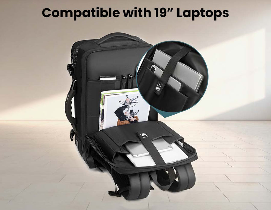 ANTI-THEFT TRAVEL BACKPACK WITH USB CHARGING AND LUGGAGE STRAP