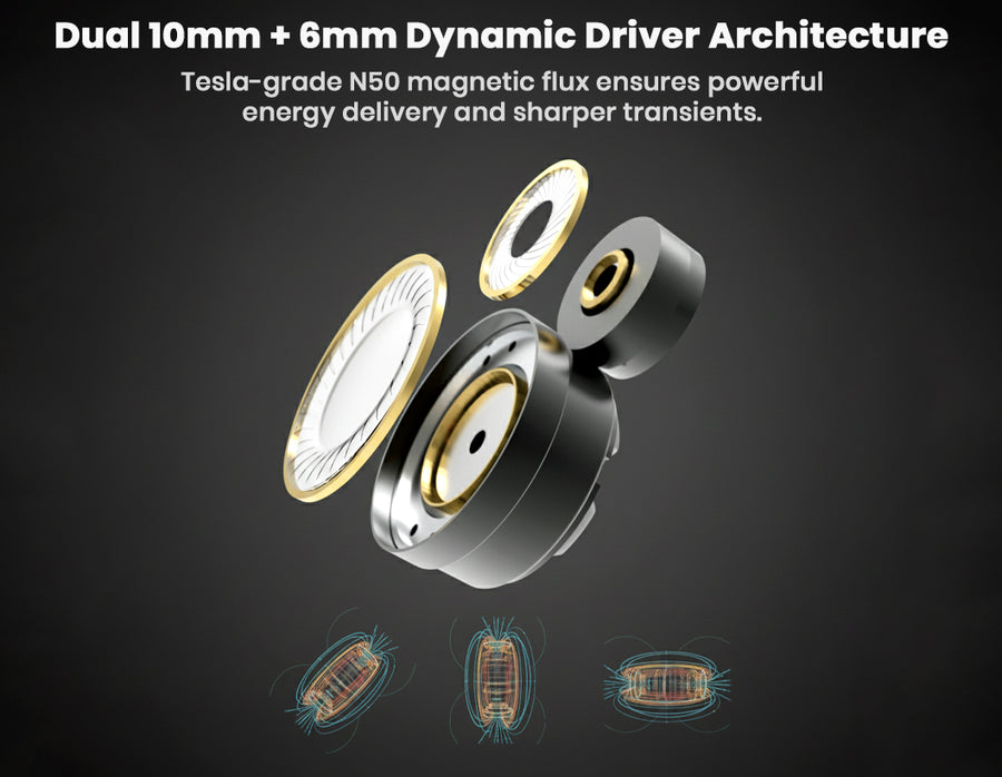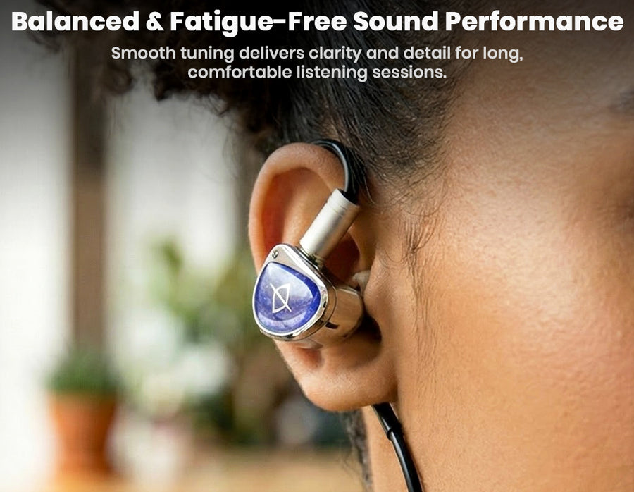 EarAcoustic STA Pro delivers high-fidelity sound through its dual dynamic driver setup. A 10mm ultra-clear analysis composite diaphragm for powerful lows and mids paired with a 6mm composite diaphragm for precise highs. Tesla-level N50 magnets generate ~10,000GS flux density, ensuring sharp dynamics, ultra-low distortion and rapid transients under 3ms with strong bass rebound around 50ms. This creates a smooth and balanced profile with wide soundstage, rich details and clear instrument separation. The balanced sound profile reduces listening fatigue and immerses the listener. A premium 0.78mm 2-pin OFC/silver-plated mixed-weave cable is also included in the package. This cable is built professionally with audiophile-grade materials and the build emphasizes pure-sonic performance with zero microphonics.