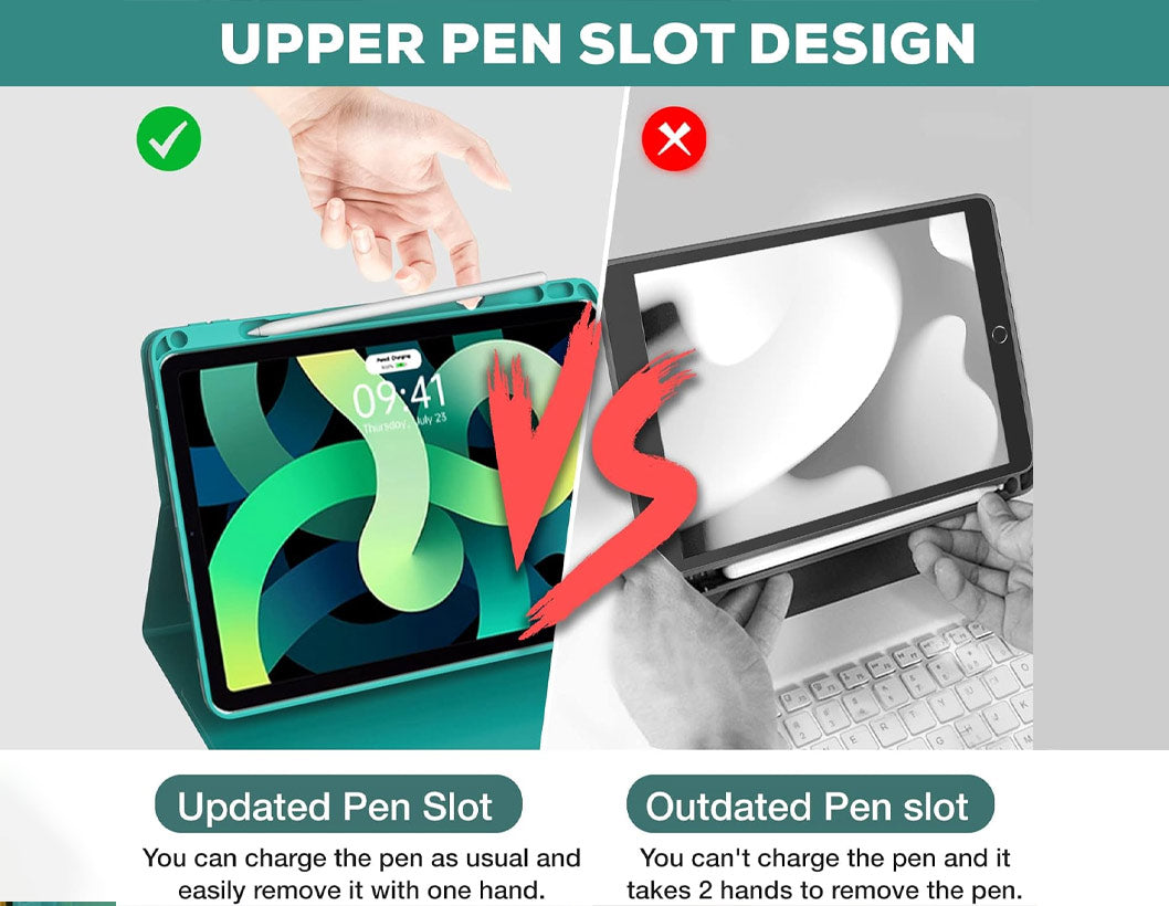 Turn Your iPad Pro 11 into a Laptop Easily - Just magnetically attach your iPad to the back cover which magnetically attach, place your stylus Pencil on top, connect it with the wireless keyboard, and instantly transform it into a laptop. It's quick and keeps you efficient wherever you go traveling or working. Plus, the pen holder design makes it easy to take out or store your pencil, so you won't lose it while on the go. (Pencil not included)