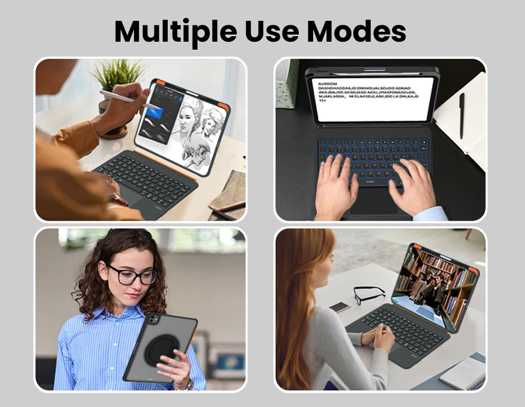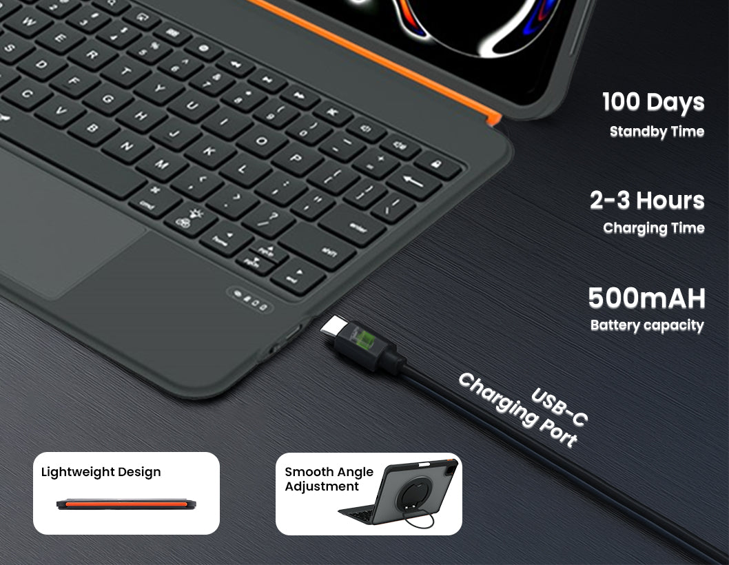 The TU3607 keyboard case is widely compatible with iPad A16 11th Gen, iPad Air M3 & M2, iPad Air 5th Gen & 4th Gen, and iPad Pro 11 4th/3rd/2nd/1st. Please verify your tablet model before making a purchase. iPad 11-inch A16 (2025) (Model - A3355, A3356, A3354, iPad Air 11-inch M3 (2025) (Model - A3267, A3270, A3266), iPad Air 11-inch M2 (2024) (Model - A2902, A2903, A2904, iPad14,8, iPad14,9), iPad Air 5th Gen 10.9-inch 2022 (Model - A2588, A2589, A2591, iPad13,16, iPad13,17), iPad Air 4th Gen 10.9-inch (2020) (Model - A2316, A2324, A2325, A2072), iPad Pro 11-inch 4th gen (2022) (Model - A2759, A2761, A2435, A2762), iPad Pro 11-inch 3rd generation (2021) (Model - A2377, A2459, A2301, A2460), iPad Pro 11-inch 2nd generation (2020) (Model - A2228, A2068, A2231), iPad Pro 11-inch (2018) (Model - A1980, A2013, A1979). Cover for iPad A16 is crafted with a strong shockproof satin acrylic back, this cover resists fingerprints, cracks, and bending, ensuring long-lasting clarity and protection. The aluminum alloy shaft maintains durability even with frequent rotation.