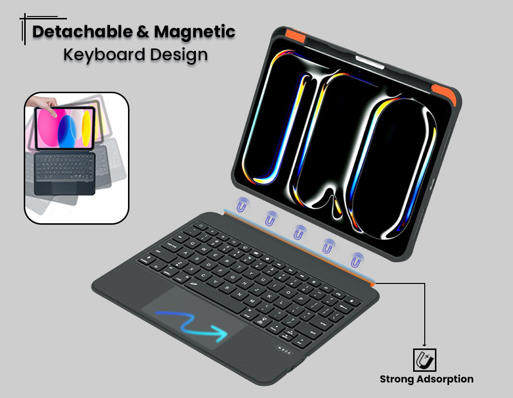 Magnetically Detachable Wireless Keyboard & Shortcut Function Keys
