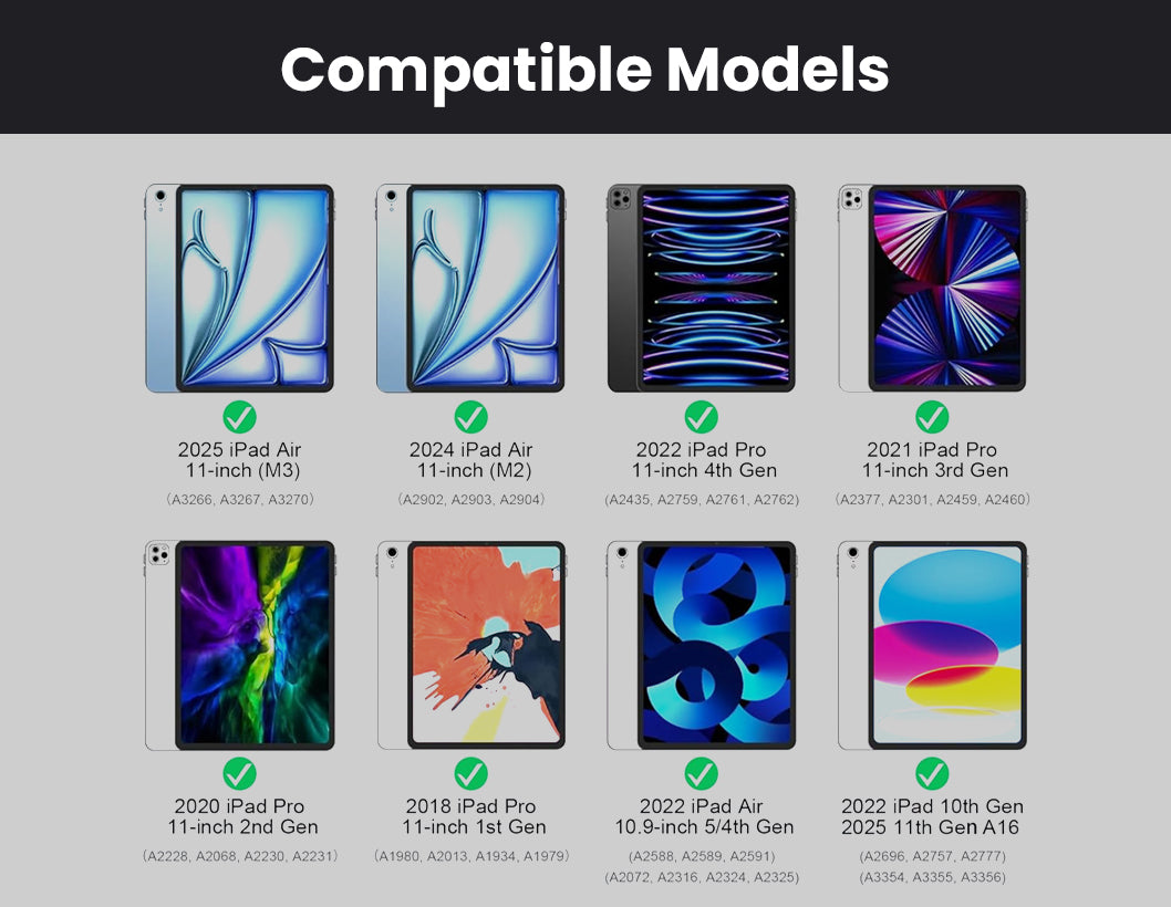 For iPad A16, iPad Air 11 (M3/M2), Air 5th/4th & Pro 11 (4/3/2/1 Gen)