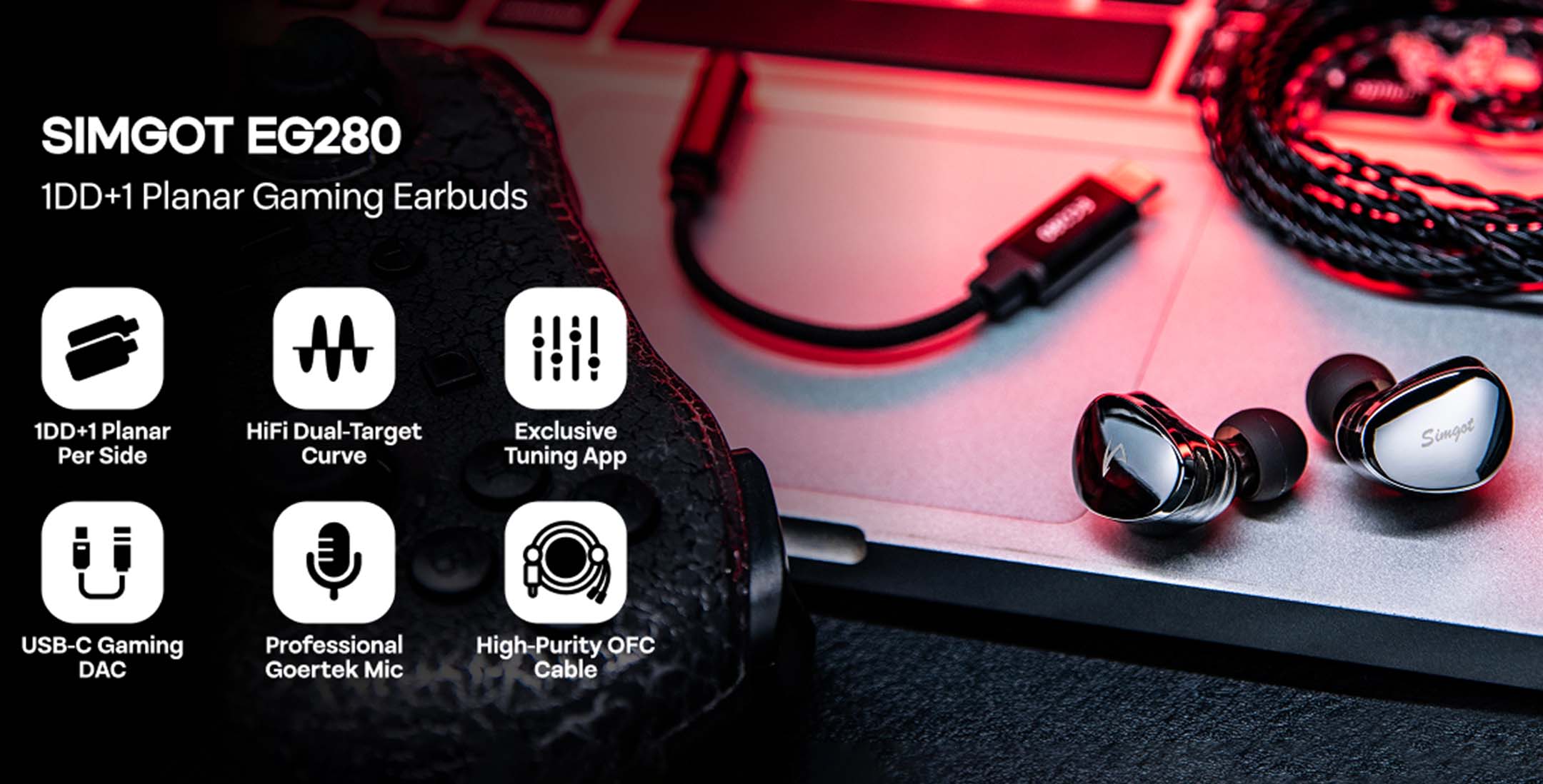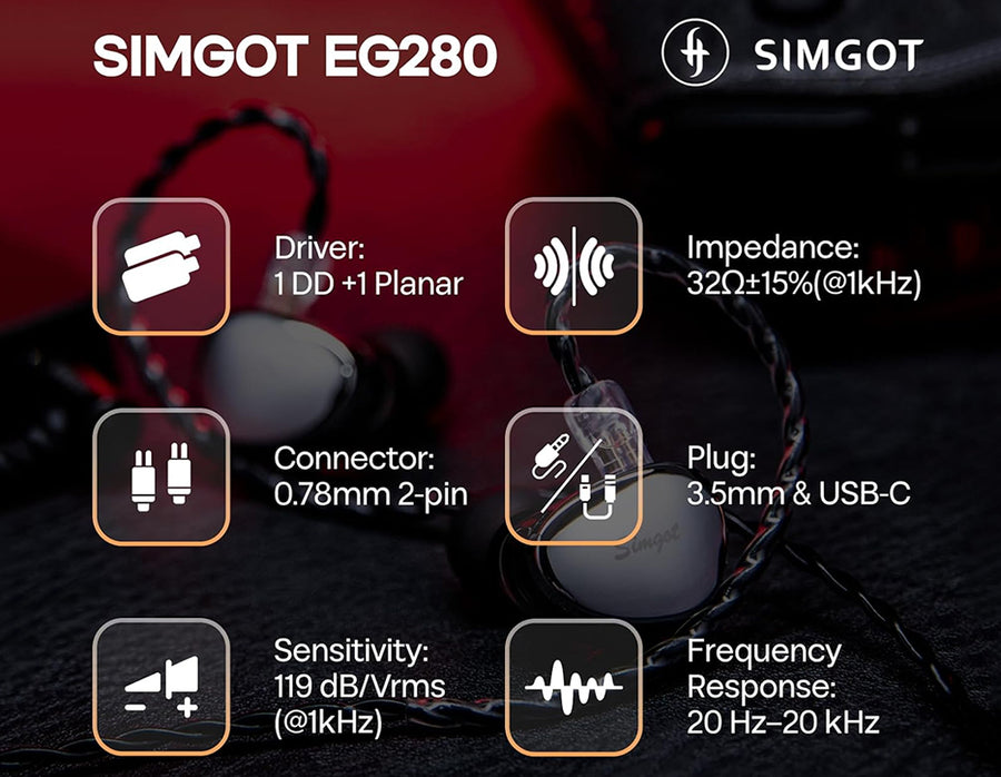 The SIMGOT EG280 is a hybrid IEM designed to be used for both competitive gaming as well as Hi-Fi music listening in High-resolution and clarity. It features an advance Dual-Driver setup combining a 10mm Dynamic Driver and a 6mm Planar Magnetic Driver. This setup ensures a rich yet balanced sound profile optimized for positional accuracy, fast transients and detailed audio reproduction. The included USB‑C DAC dongle houses a dedicated 32‑bit/384 kHz high‑performance audio chip, enabling distortion‑free sound with ultra‑low noise and near‑zero latency. It also supports customizable EQ via the SIMGOT Control app, so it can be optimized for both seamless gaming and high-fidelity audio use.