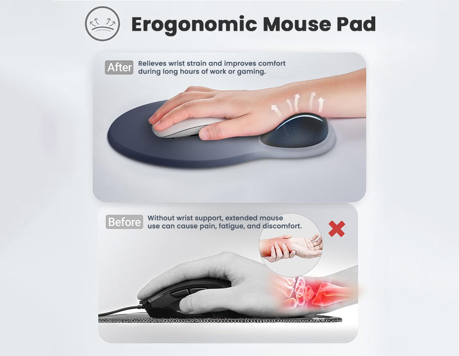 Experience ultimate comfort and support with the TECPHILE Ergonomic Mouse Pad, designed for those who spend long hours at their computer. Featuring a premium silicone gel cushion, this mouse pad provides exceptional wrist support, helping to reduce strain and fatigue during work, study, or gaming. Its ergonomic design, smooth lycra surface, and non-slip PU base ensure precision, stability, and lasting durability. Perfect for professionals, students, and gamers, it’s the ideal choice for maintaining healthy wrist alignment and enhancing your overall productivity and comfort.