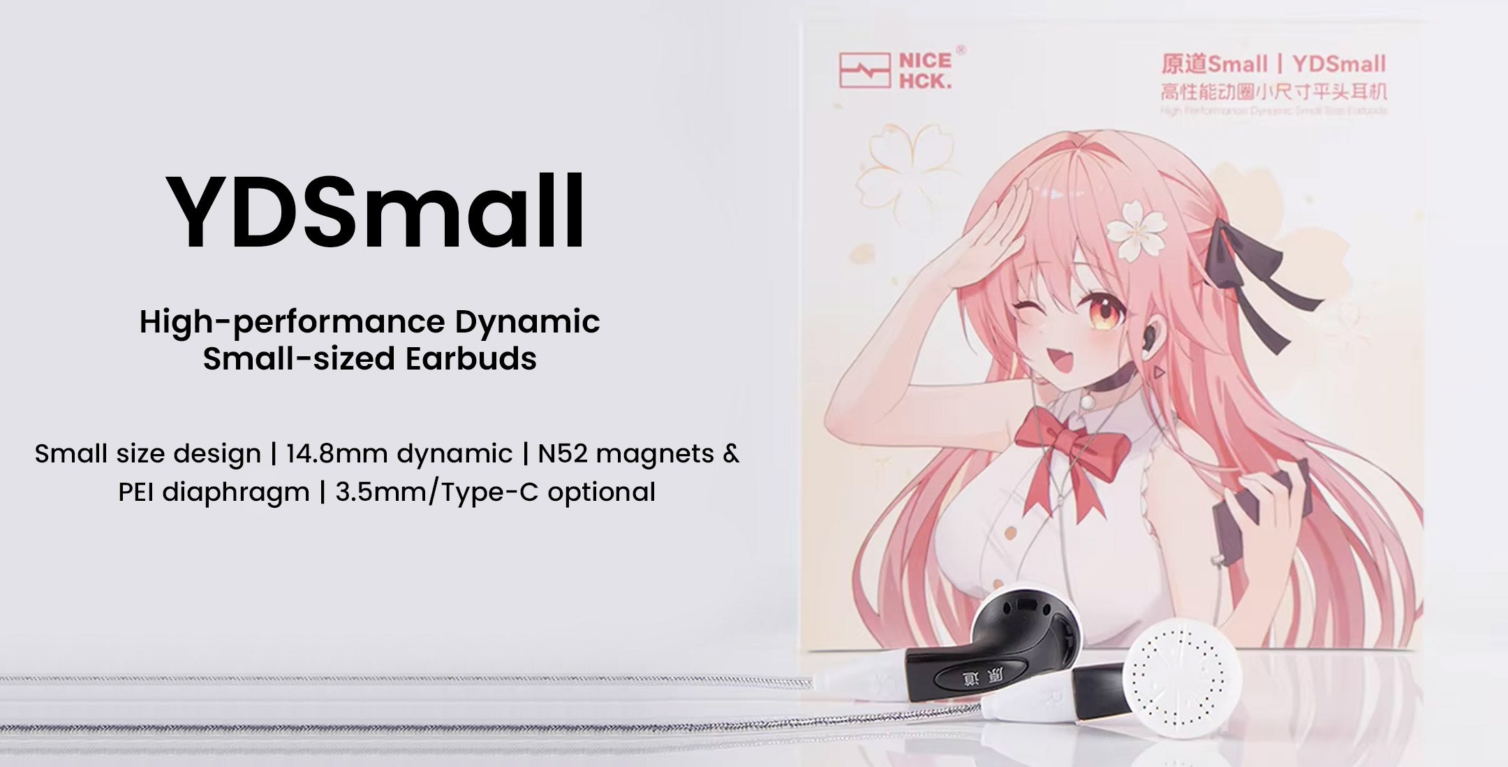 The NICEHCK YDSmall is a compact wired earphone featuring a 14.8mm dynamic driver with a PEI diaphragm and N52 magnets for rich bass, clear mids, and crisp highs. Designed for audiophiles and casual listeners alike, this earphone comes in both Type-C and 3.5mm versions. The Type-C model includes a CX31993 DAC supporting up to 32-bit/384kHz hi-res audio. Its ergonomic ABS shell ensures comfort during extended use, while the fixed copper cable offers stable signal transmission. The Type-C version also includes an in-line HD mic with a multifunction button for calls and music control, making it an ideal earphone for daily use.