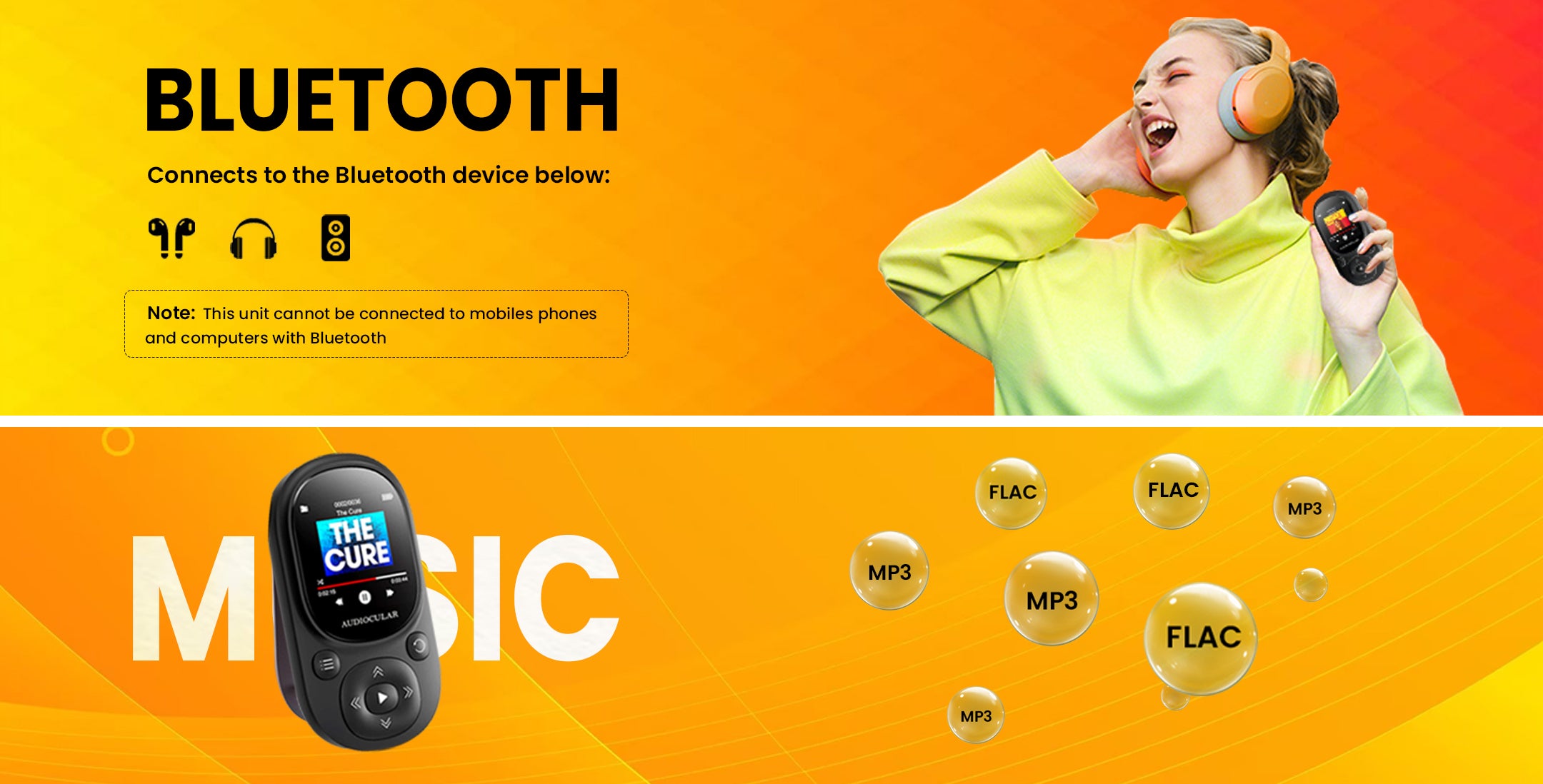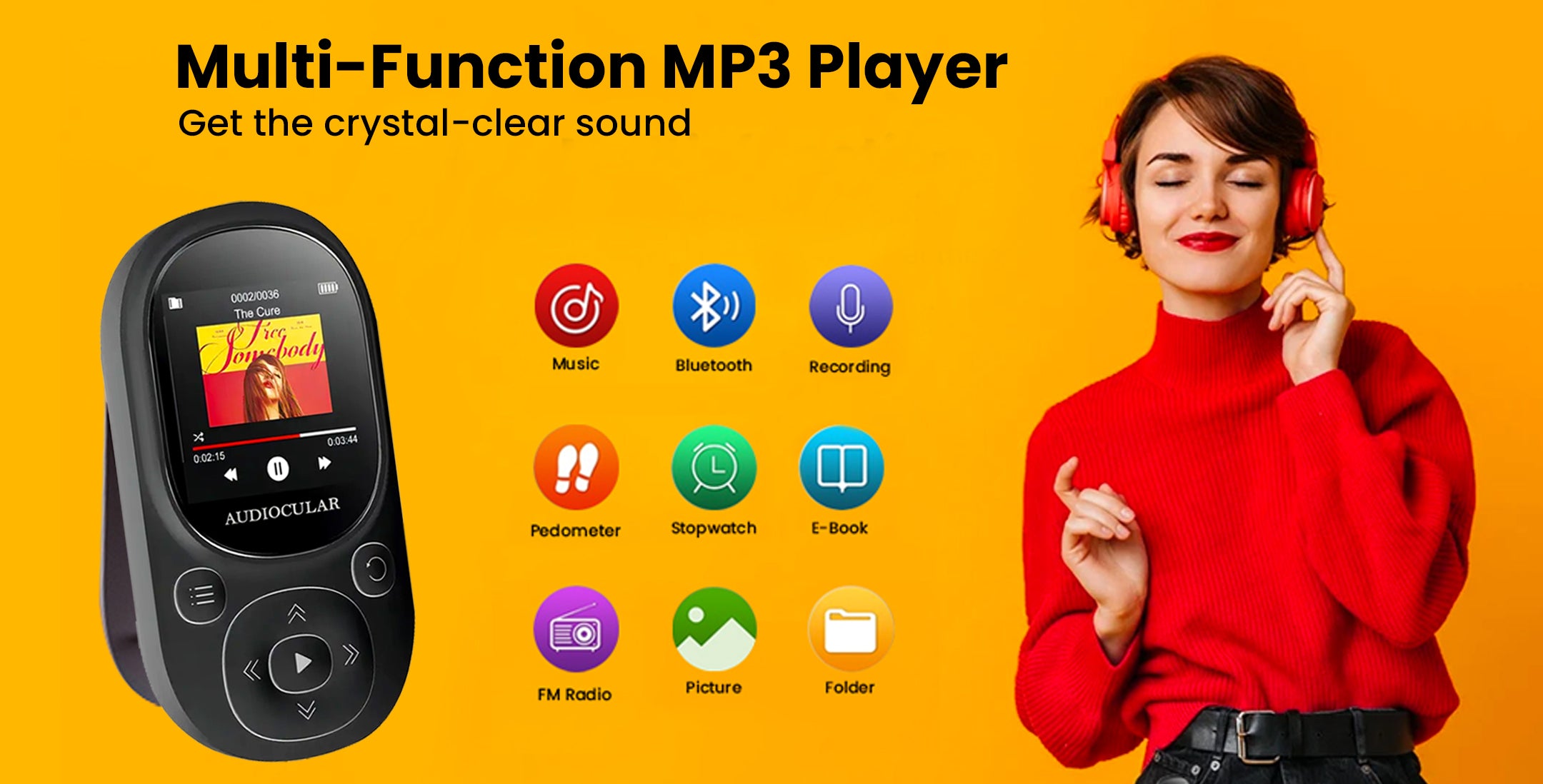 32GB / 16GB Portable MP3 Music Player With Clip, Bluetooth, and Pedometer. Digital Audio Player For Travelling, Jogging, Cycling More.