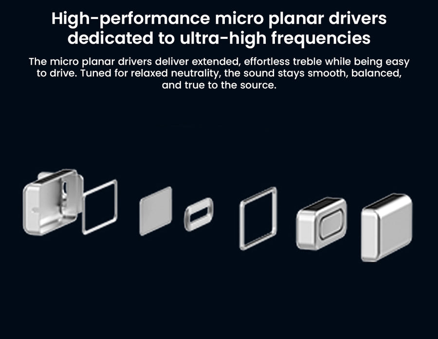 The DUNU DN-142 Ao Bing Edition delivers audiophile-grade tribrid performance through its sophisticated 1DD+4BA+2 Micro Planar 7-driver configuration, featuring a 10mm dynamic driver for deep bass foundation, 4 custom BA drivers (2 mid + 2 treble) for detailed separation, and dual planar magnetic drivers rivaling electrostatics for airy ultra-high extension. Precision-engineered HeyGears resin shells (5.6g per side) with complex acoustic chambers ensure phase coherence, while the dual-system 4-way crossover provides seamless frequency integration across classical, pop, and rock genres. Complete with premium 4-core silver-plated OCC copper Litz cable featuring Q-Lock Mini modular plugs (3.5mm/4.4mm), the DN-142 offers authentic neutral tuning, ergonomic comfort, and universal source compatibility in a beautifully crafted package symbolizing Eastern aesthetics and inner power.