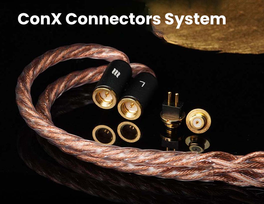 The Ares S II features ConX connectors on the IEM side. This modular design allows you to easily switch between different connector types (MMCX, Pentaconn Ear, IPX, A2DC) by purchasing optional ConX adapters, expanding the cable's compatibility with a wide range of IEMs. The source side terminates in a standard Rhodium-plated brass 4.4mm straight plug.