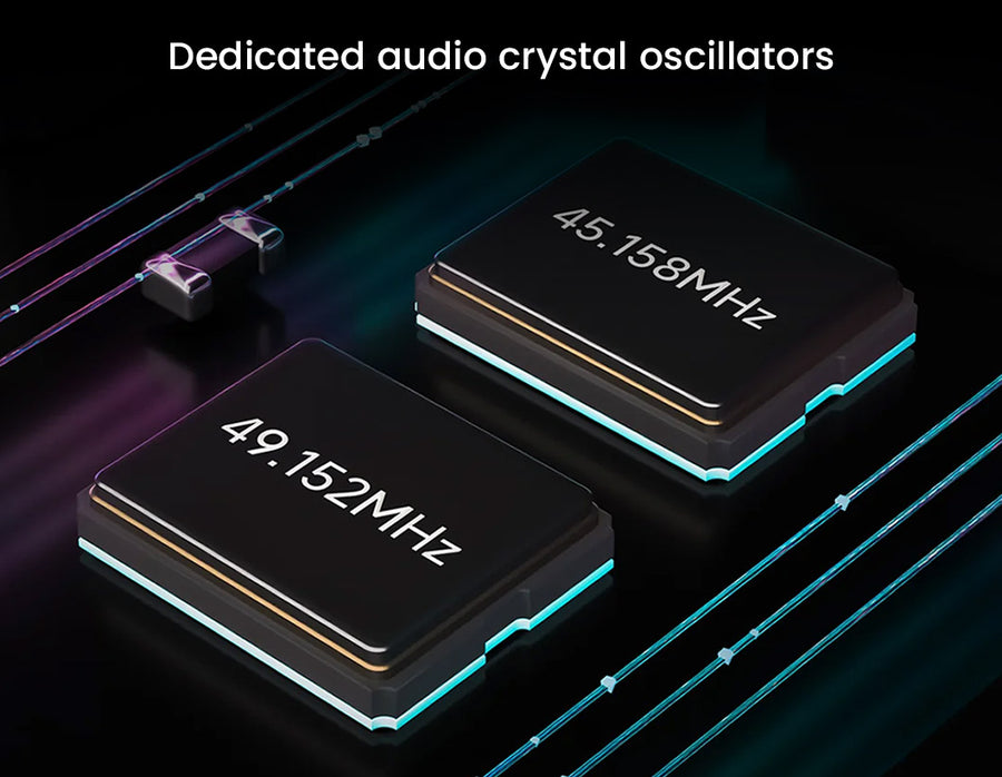 The HiBy R6iii 2025 employs dual independent crystal oscillators (45.158MHz and 49.152MHz) for ultra-low phase noise and minimal jitter. This ensures exceptional audio clarity with every track, resulting in a listening experience that is as close to the source as possible.
