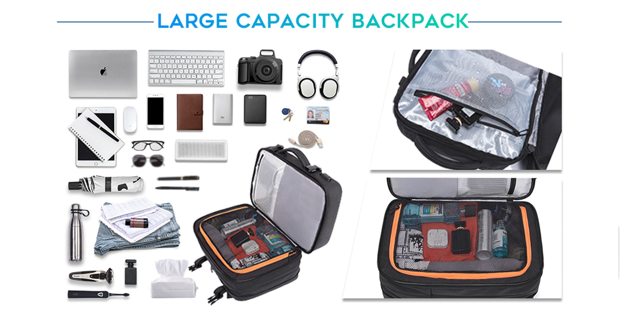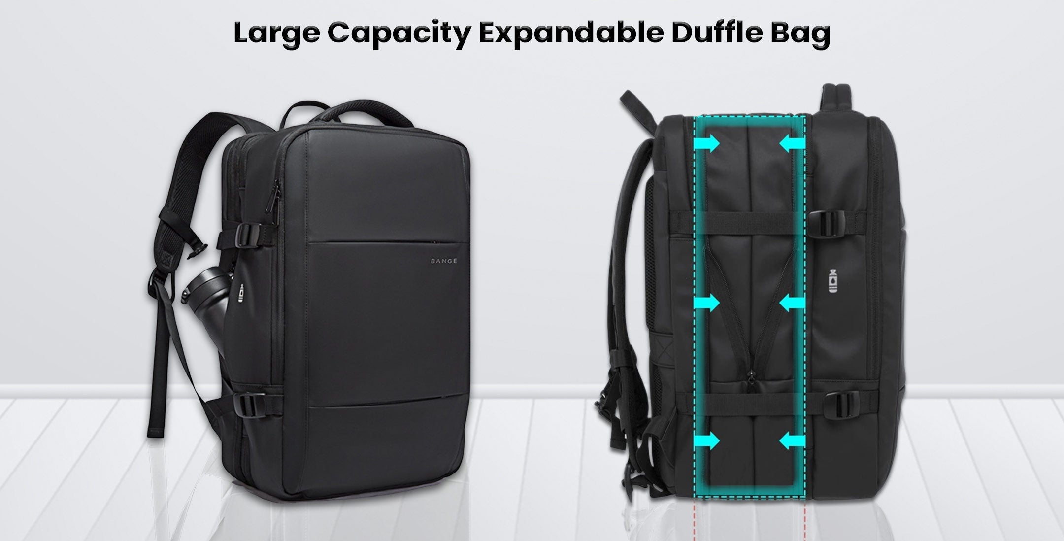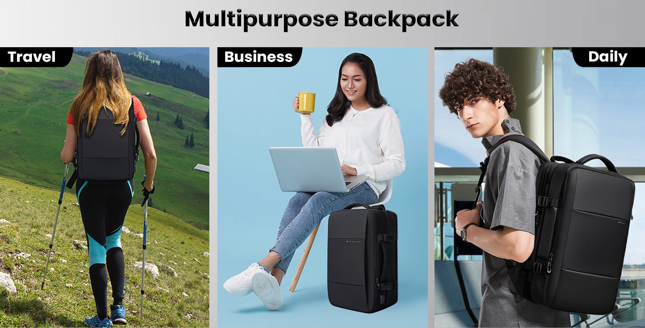 The BANGE 1908D Expandable Laptop Backpack is a versatile and durable laptop bag designed for modern travelers. The versatile 3-in-1 design transitions seamlessly between an office bag, travel companion, and hiking backpack, offering flexibility for every occasion. With a large 45L-55L capacity, this backpack for men fits a 15.6" laptop and up to a 17.3" laptop, making it perfect for office use or outdoor adventures. Its waterproof Oxford fabric protects your gear, while the anti-theft pocket ensures safety. The bag offers a 3-in-1 convertible design—use it as a laptop backpack for men, luggage, or a shoulder bag. Ideal for both men's bags and women's bags, this laptop bag is waterproof and includes an external USB charging port for on-the-go convenience.