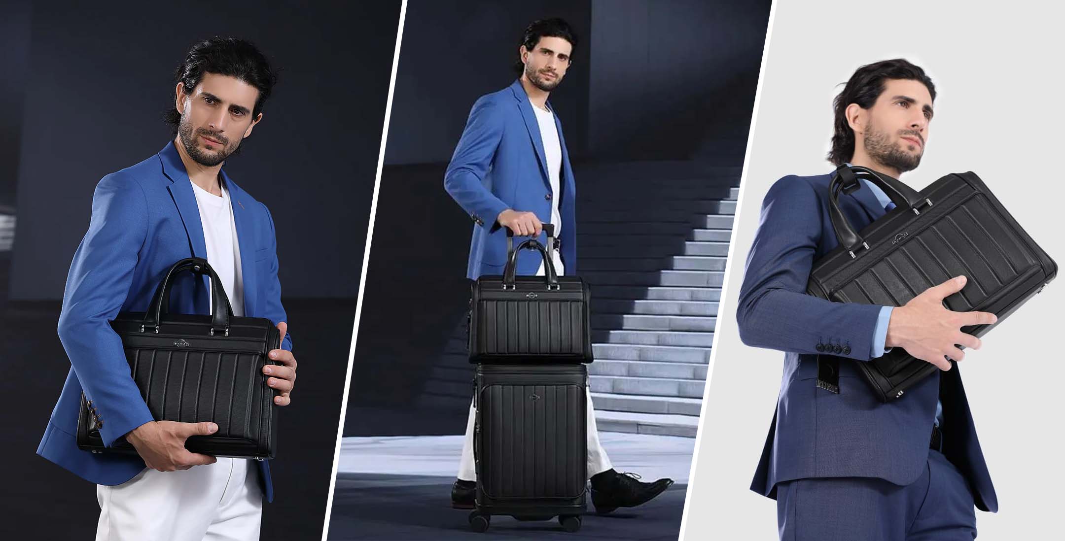 TRAVEL-READY BRIEFCASE BAG WITH LUGGAGE STRAP & WET/DRY POCKET