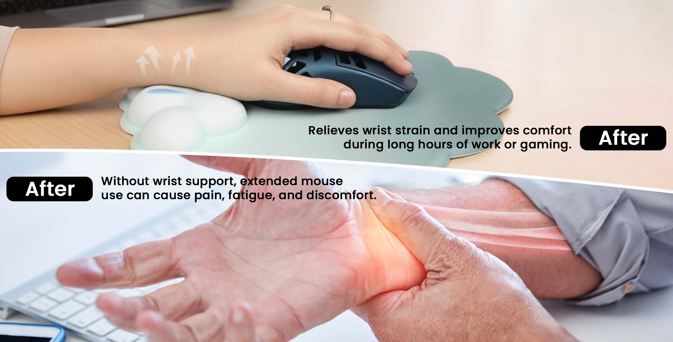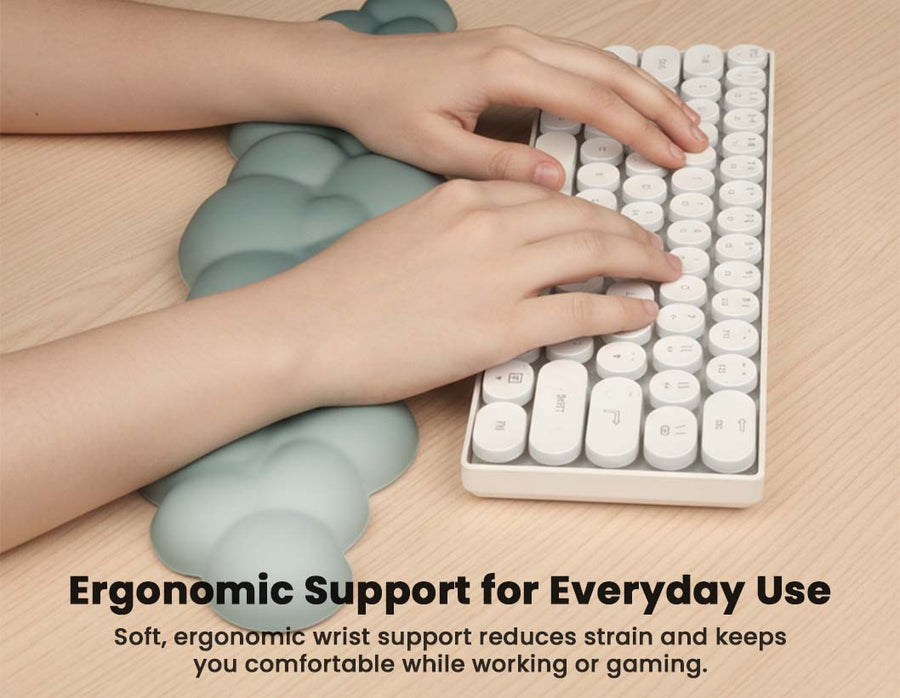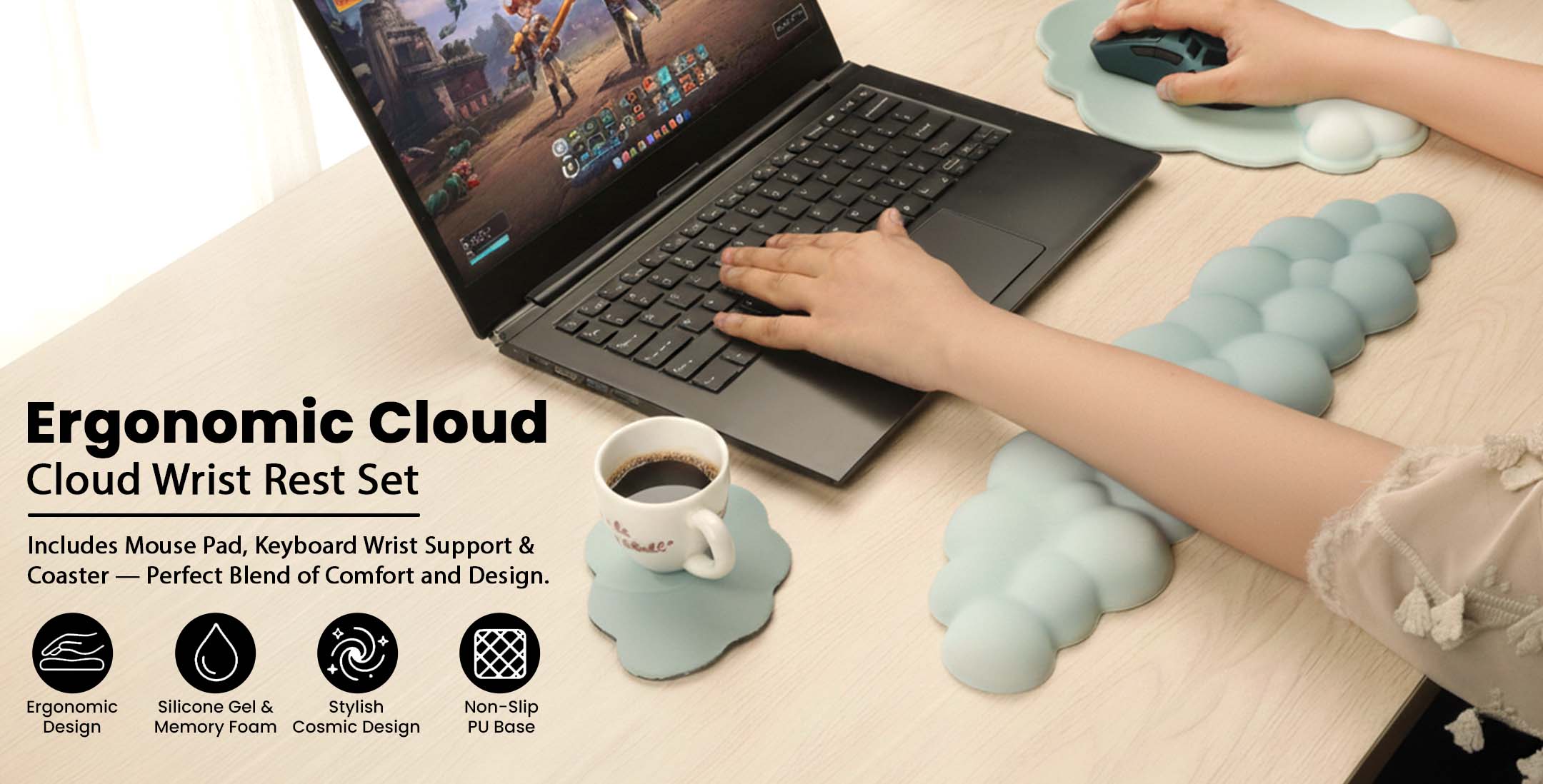 Experience ultimate wrist comfort and ergonomic support with the TECPHILE Cloud Shape Ergonomic Gel Mouse Pad Set, thoughtfully designed for professionals, students, and gamers who spend long hours at their computer. This 3-in-1 combo includes a Cloud-Shaped Mouse Pad with Gel Wrist Rest, a Keyboard Wrist Support, and a Matching Coaster—crafted to bring comfort, style, and function to your desk. The complete desk comfort set brings both style and functionality to your workspace with its coordinated 3-in-1 design. It includes a cloud-shaped mouse pad with a gel wrist rest, a keyboard wrist support pad, and a matching coaster for your drink. Together, these accessories provide consistent ergonomic comfort and visual harmony, making them ideal for typing, gaming, or everyday office use.
