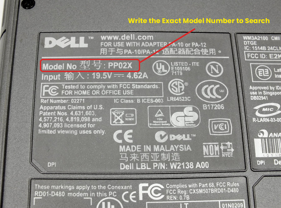 Write the Exact Model Number to Search