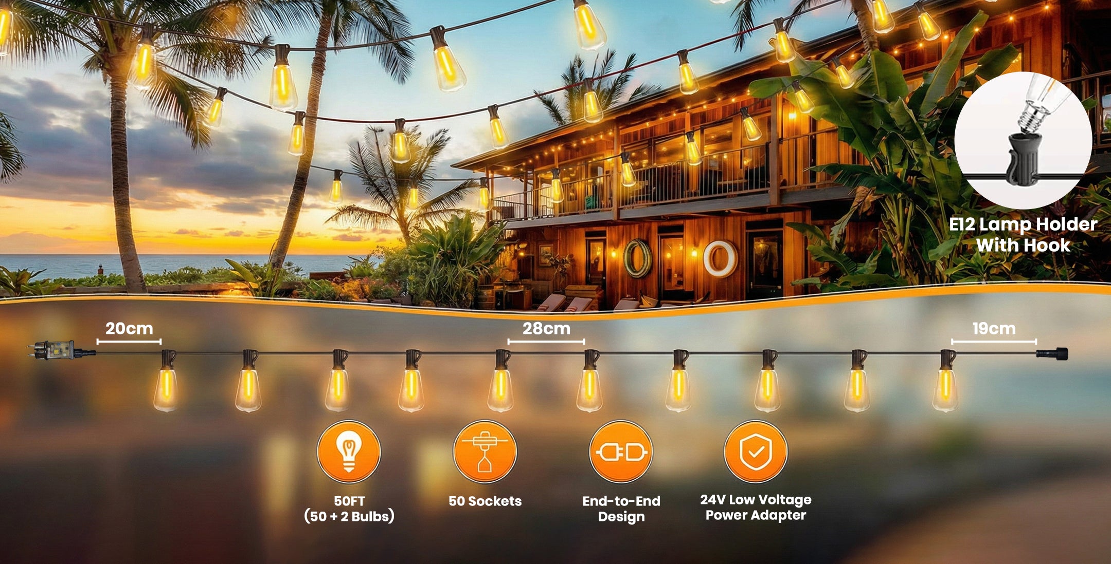 Easy Installation with Built-In Hanging Hooks and E12 Sockets