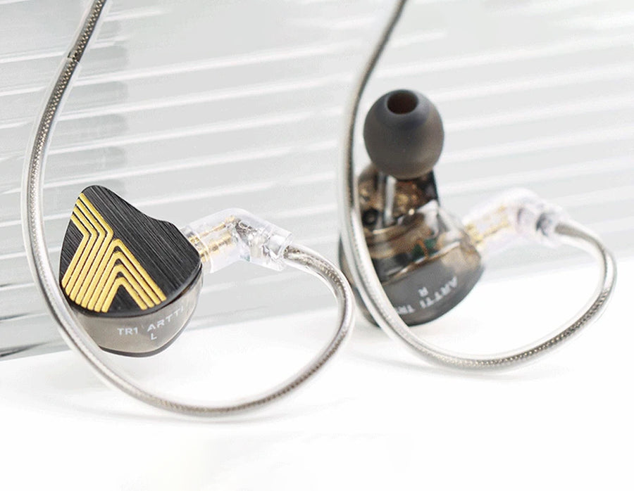 The ARTTI TR1 1DD + 1BA Hybrid IEM is a versatile in-ear monitor that combines advanced driver technology with superior comfort. It features a hybrid configuration of a 10mm Beryllium-Plated Dynamic Driver and a Single Balanced Armature Driver, delivering exceptional clarity and detail across a 20Hz-20kHz frequency range. The IEM offers impressive passive noise reduction of -24dB and ultra-low distortion (≤1% @1kHz) for high-fidelity audio. Housed in a lightweight aluminium alloy shell, the TR1 ensures durability and comfort for extended listening sessions. It comes with a high-quality detachable cable featuring a 200D bullet-proof wire and 6-core OFC construction for superior signal transmission. With an impedance of 32.4Ω and sensitivity of 108dB/mW, the ARTTI TR1 is compatible with various devices and is available with both 3.5mm and Type-C plug options. This hybrid IEM offers an immersive listening experience for audiophiles, musicians, and gamers, blending advanced technology with user-friendly design.