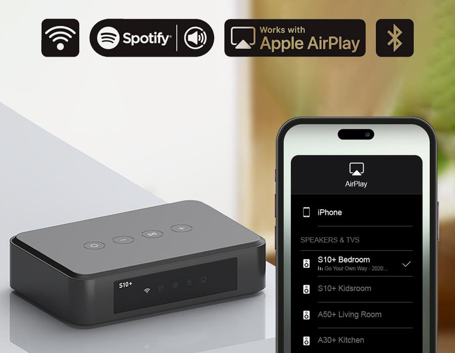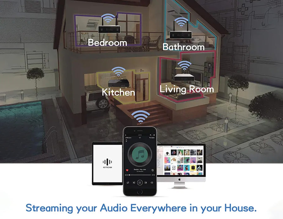 The Arylic A30+ Wireless Amplifier is a versatile device designed to deliver high-quality audio in any space. It supports multi-room syncing and wireless streaming via WiFi, AirPlay, DLNA, UPnP, and Bluetooth, with compatibility for lossless formats like FLAC, MP3, AAC, ALAC, APE, and WAV. Its compact design, combined with input options such as USB and Aux, makes it ideal for both home and professional audio setups. The 4Stream app enables seamless control, offering an effortless listening experience. makes it ideal for both home audio setups and professional sound systems. the home amplifier for speakers controls anytime in every room with the user-friendly app for a customizable listening experience.