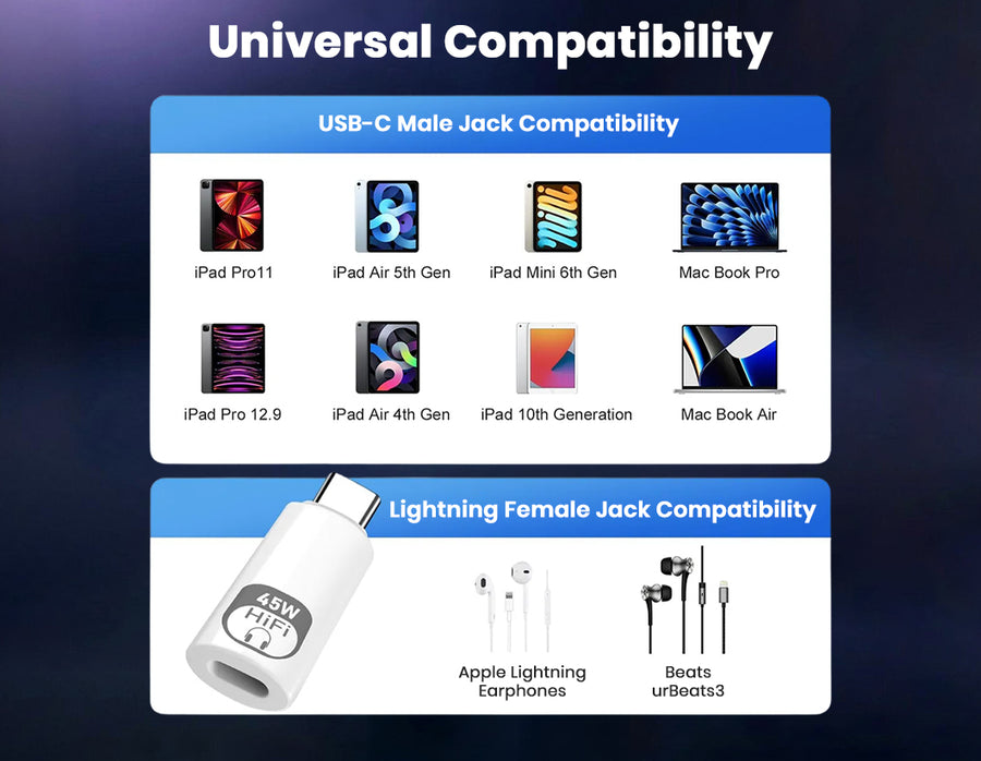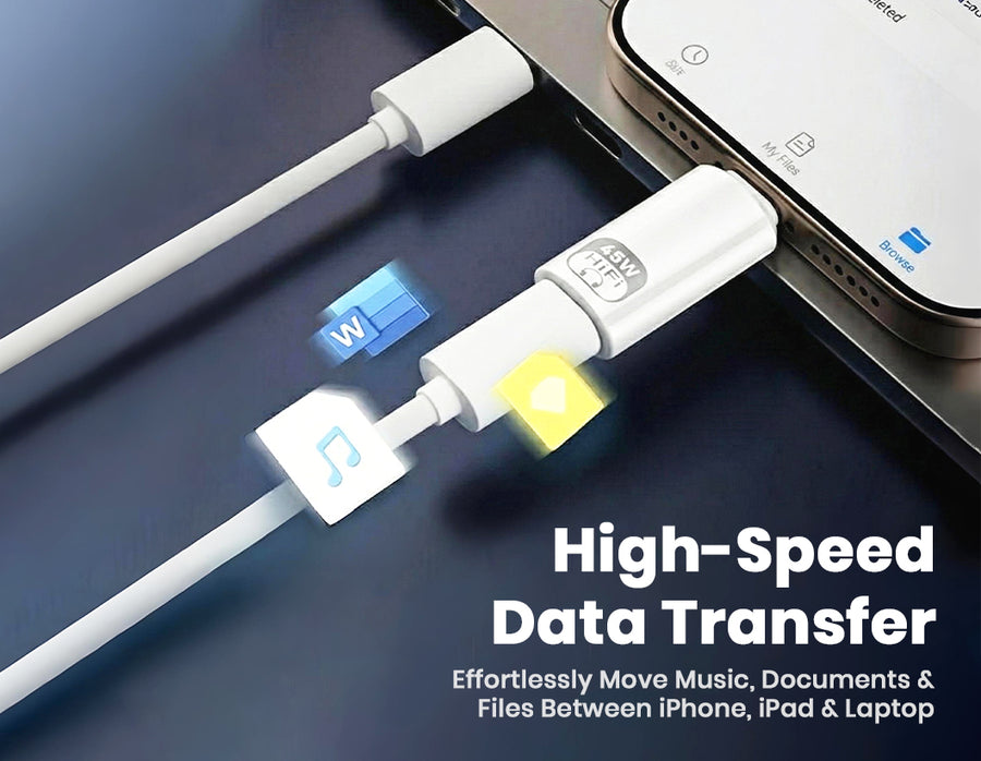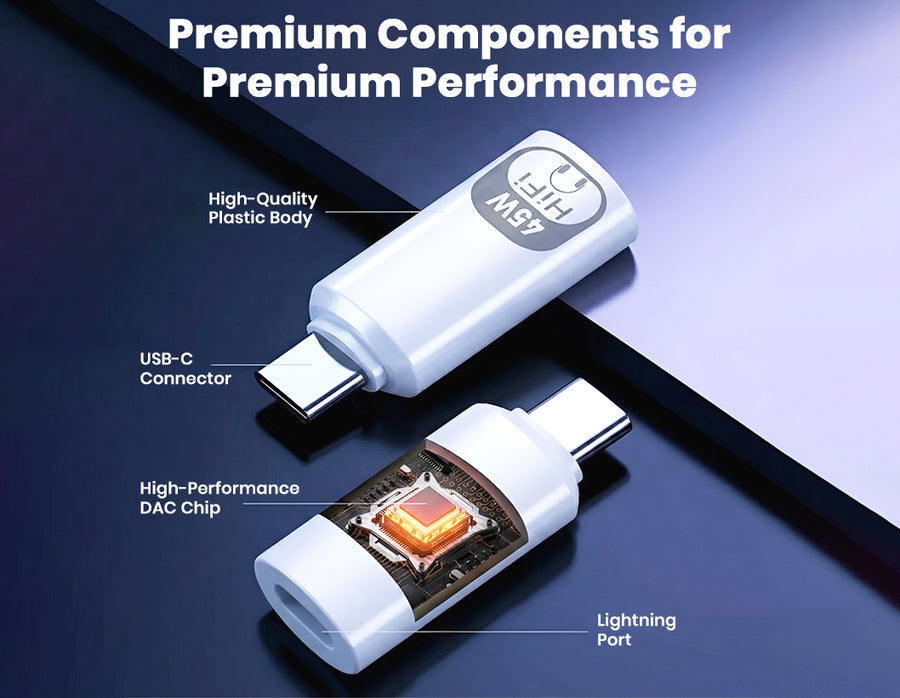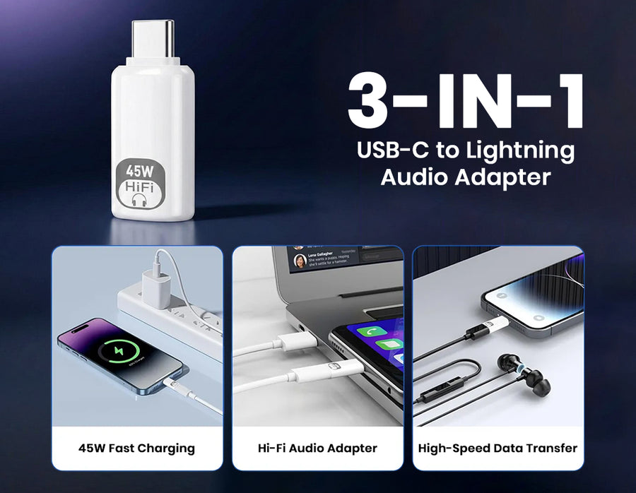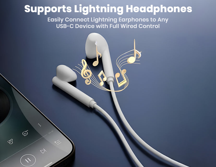 The AUDIOCULAR USB-C to Lightning Adapter merges high-quality Lightning audio with 45W PD fast charging in a sleek, compact design. Featuring an integrated digital DAC, it delivers clean and immersive audio with full microphone and button controls. Its 45W Power Delivery passthrough allows you to charge your device rapidly while listening, gaming, or attending calls.