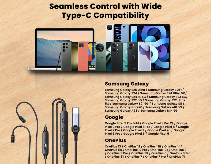 The Audiocular C08 Type-C upgrade cable features a CB1300AU DAC (24bit/960Khz) and 14bit/192kHz ADC for high-resolution audio and crystal-clear voice input. This premium upgrade cable includes AI-ENC noise cancellation, an advanced HD mic with 4-button control, and a reinforced Type-C connector with a 5.1K resistor. Built with a durable 4-core design, the 1.2m TPE upgrade cable is tangle-resistant and offers broad compatibility with modern Type-C devices, making it ideal for daily and professional use.