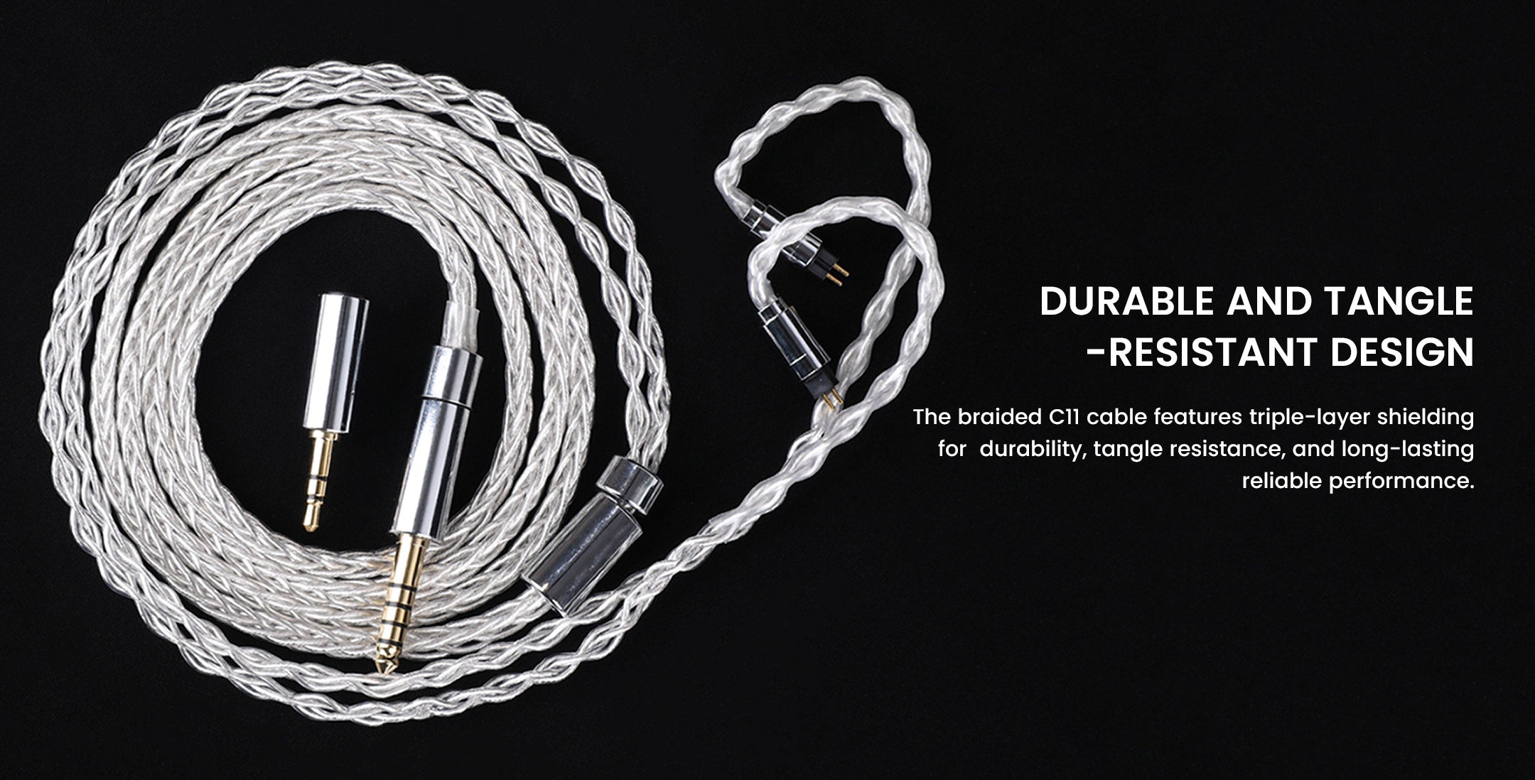 The AUDIOCULAR C11 is a premium IEM upgrade cable available in striking White and Copper variants. Made with 8 cores of single-crystal copper coated in silver (4N OCC), this triple-layered braided cable offers superior audio clarity and durability. Featuring modular terminations with 3.5mm and 4.4mm connectors, it suits a wide range of IEMs with 0.78mm 2-pin compatibility. An optional Type-C adapter, supporting up to 16bit 48kHz audio quality, adds versatile connectivity for modern devices. The C11 prioritizes pure and lossless sound for audiophiles seeking refined listening experiences.