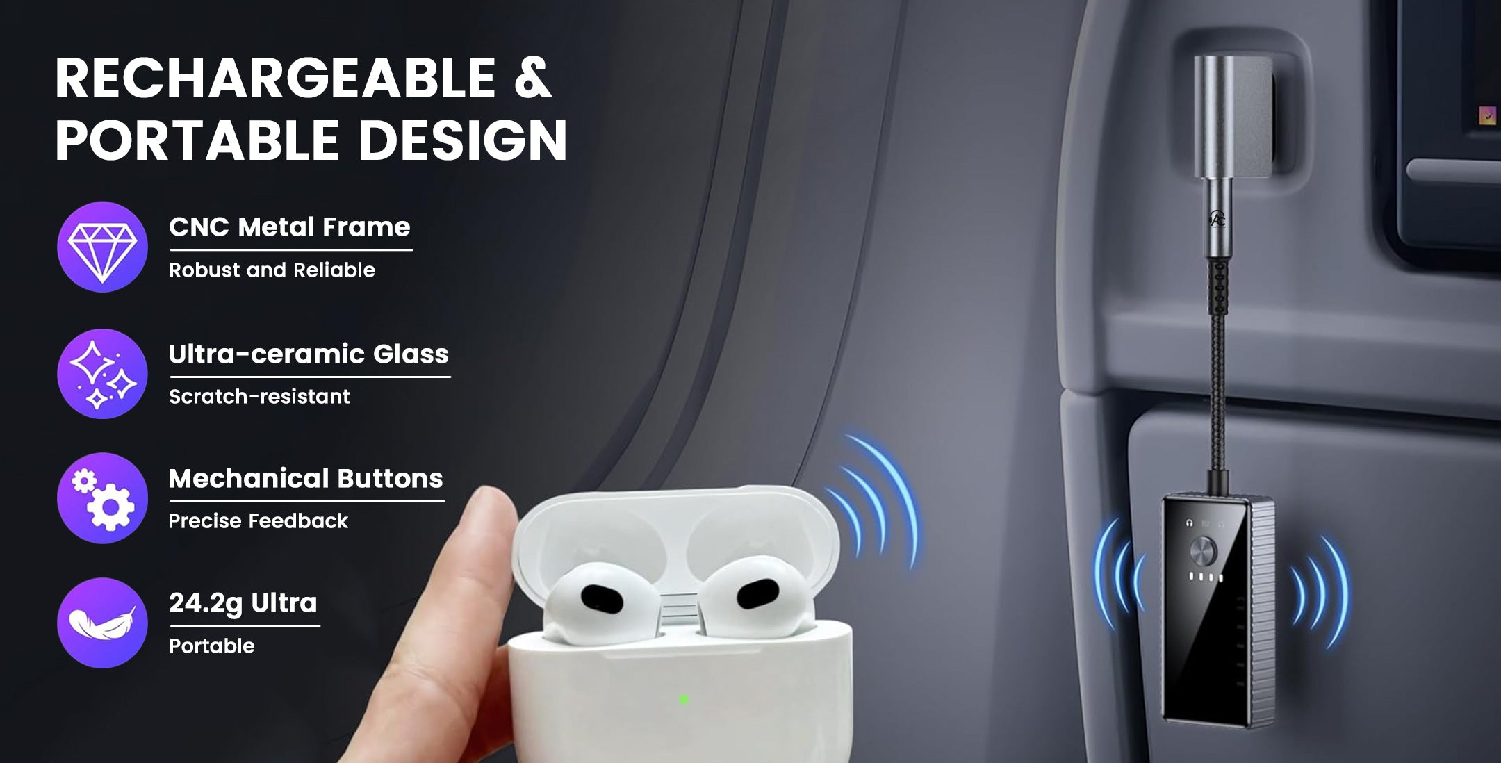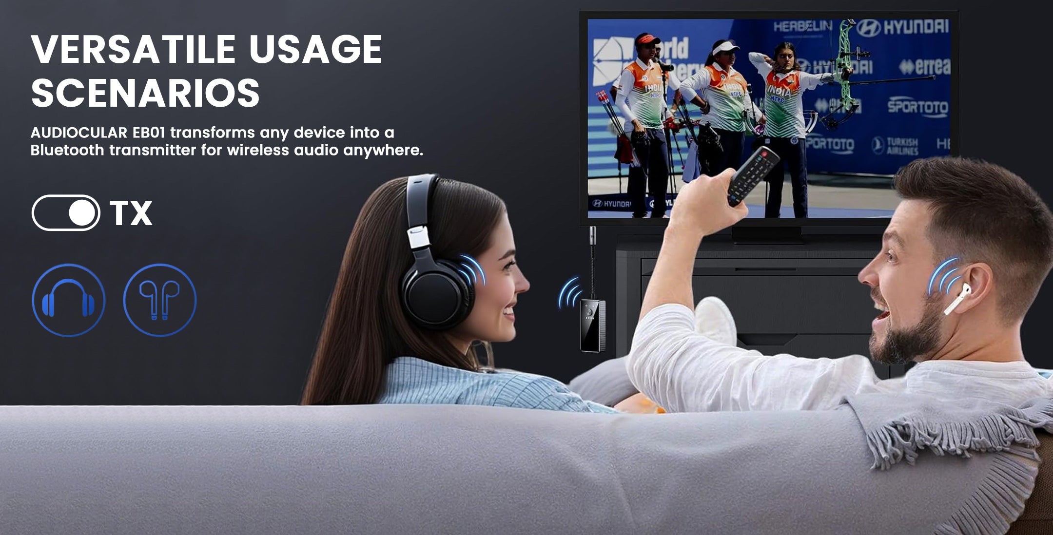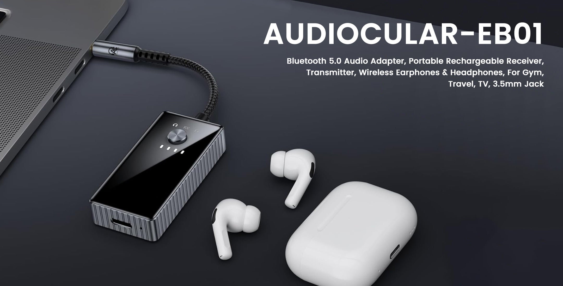 The AUDIOCULAR EB01 Bluetooth Transmitter lets you wirelessly connect your Bluetooth headphones or speakers to any device with a 3.5mm audio output, like TVs or computers. With Bluetooth 5.0, it delivers stable and high-quality audio streaming with minimal delay. Simply plug in, power on and pair your headphones for instant wireless sound. Its compact design and rechargeable battery make it perfect for home or travel use. Enjoy freedom from cords and experience your favorite audio with ease using the EB01.