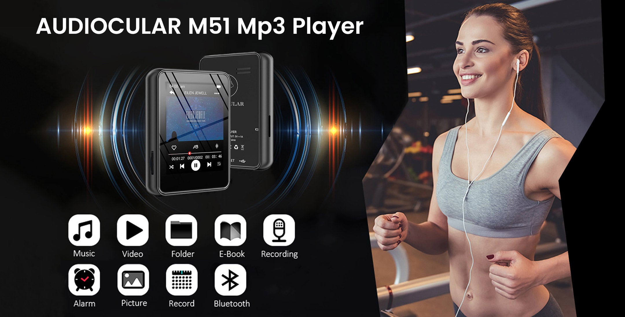 Experience premium sound on-the-go with the AUDIOCULAR M51 Portable MP3 Player. Featuring a 2.4" touch screen, Bluetooth 5.0, 32GB microSD (expandable to 128GB), HiFi lossless audio, built-in speaker, FM radio, video playback, and voice recording – all packed in a compact, travel-friendly design.