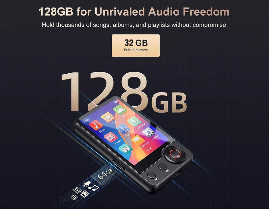 INTRODUCING A NEW AUDIOCULAR M71 PORTABLE MP3 MUSIC PLAYER AUDIOCULAR M71 is the latest launch, the latest portable Mp3 music player with 32GB internal storage (expandable to 128GB), Bluetooth connectivity, Video Playback, and 2.4-inch TFT color screen with touch screen for easy navigation. Enjoy wireless freedom and ample storage for your Favorite tunes.