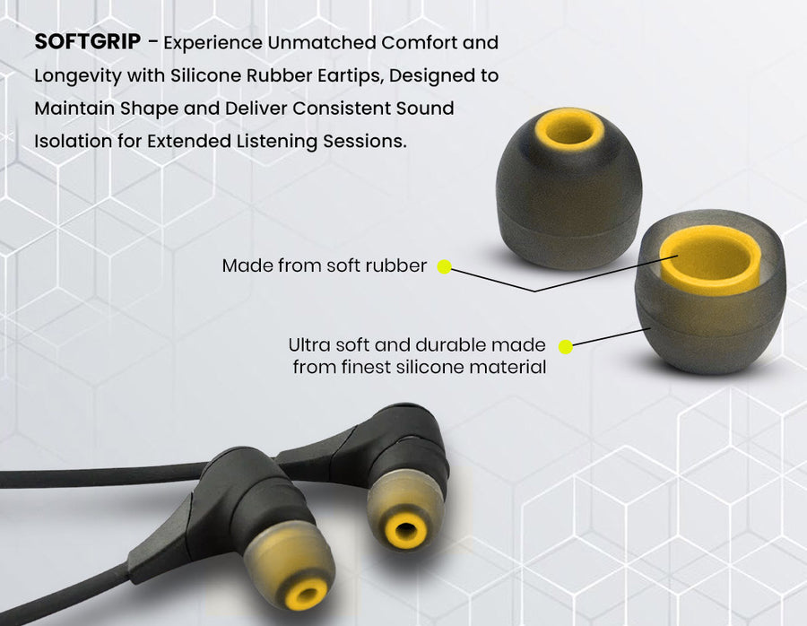 3.SoftGrip: Silicone Rubber Eartips - Grey & Yellow
