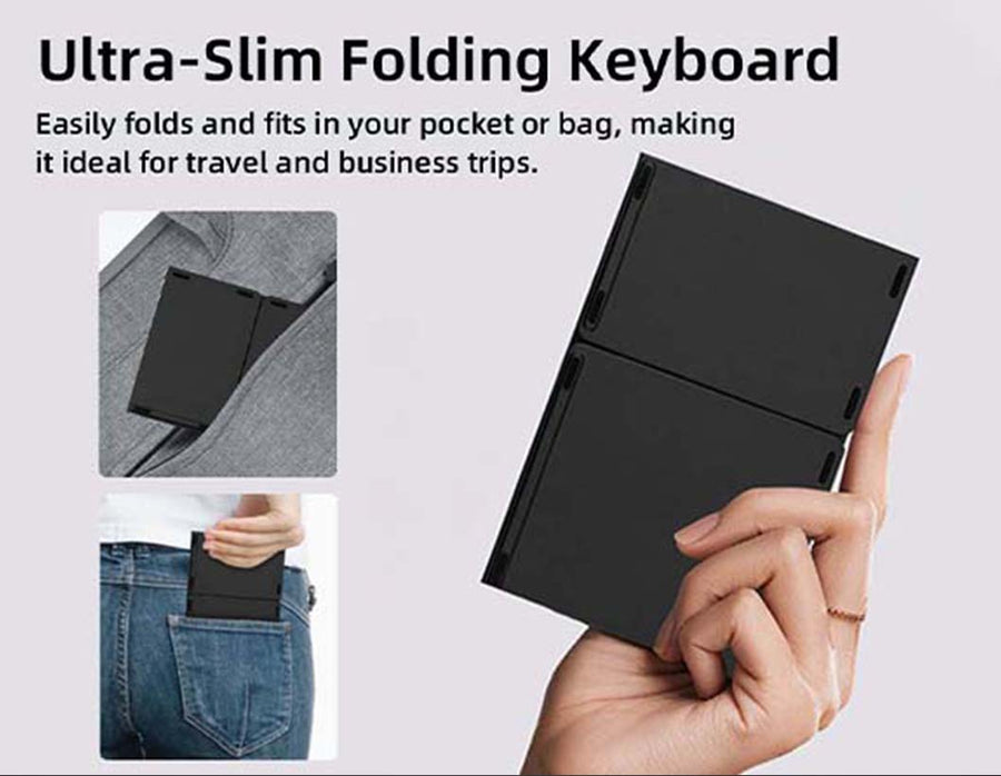 EFFICIENCY AND PORTABILITY WITH OUR SLEEK 3-FOLD FOLDABLE KEYBOARD