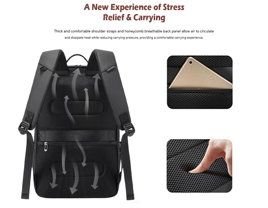 The Bange 2953 is the ultimate laptop backpack for men, perfect for work, travel, and daily use. Crafted from water-resistant fabric, it keeps your 15.6-inch laptop safe with a scratch-resistant compartment. Durable YKK zippers ensure smooth access, while breathable fabric, ergonomic straps, and padded back support enhance comfort. With a 30x46x16cm size and just 1.5kg weight, it offers the perfect blend of space and portability. A side bottle pocket adds convenience, making it the ideal travel bag for men. Stylish, durable, and functional—your go-to backpack for any journey!