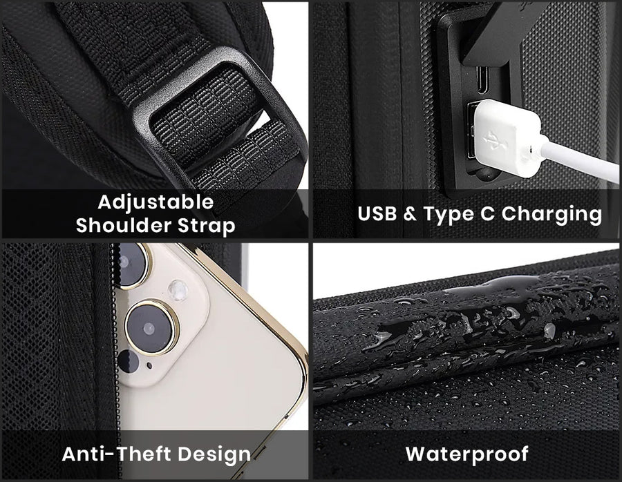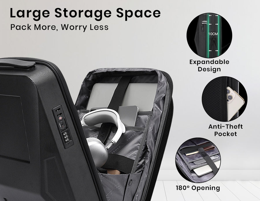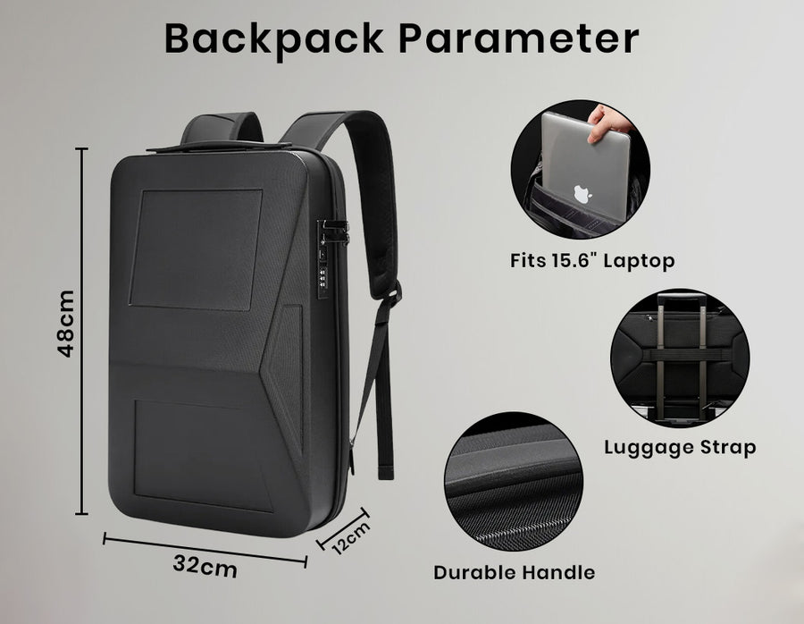 BANGE 1810 Hardshell Laptop Backpack: Secure, stylish, and functional. Its durable EVA hard shell and waterproof Oxford fabric offer superior protection against impacts, rain, and scratches. Stay powered with dual Type-C and USB charging ports, and organize effortlessly with 13 compartments, including a padded 17-inch laptop section. Features TSA-approved lock, anti-theft pocket, breathable sponge back, ergonomic straps, and luggage strap for convenience. Perfect for travel and daily use.