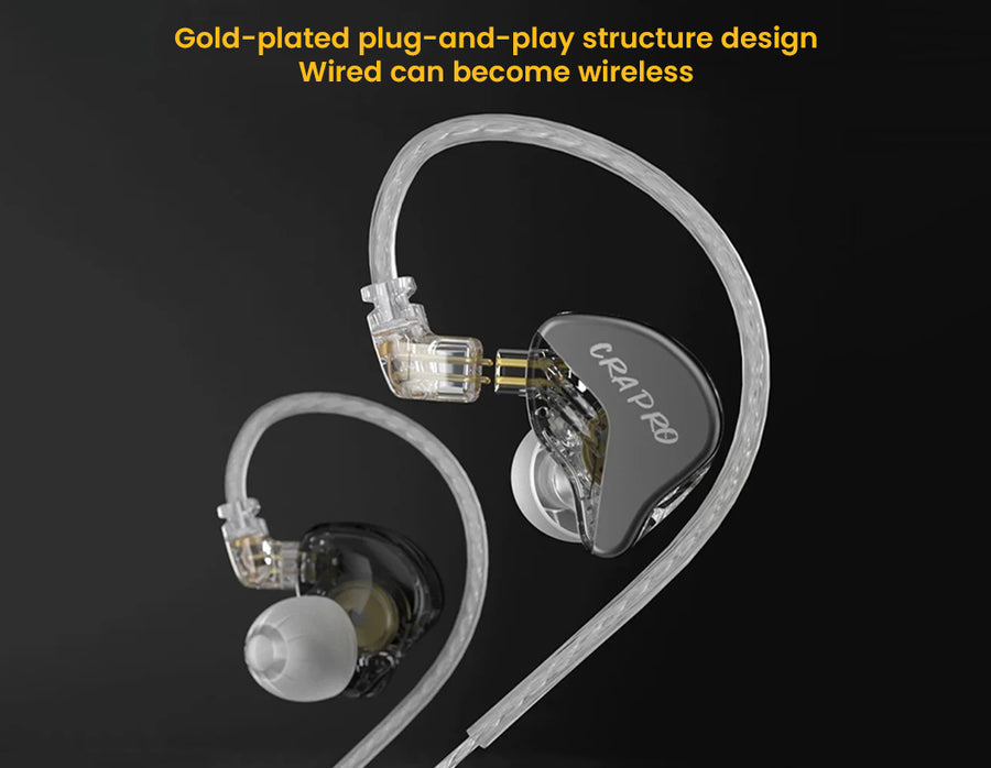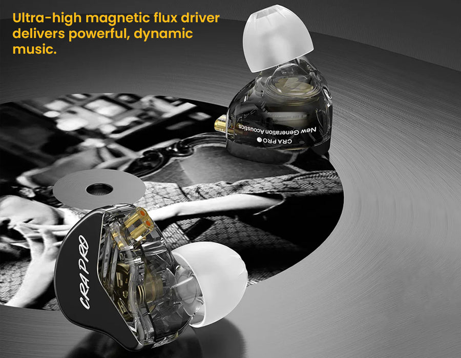 Experience your music like never before with the CCA PRO WIRED IEM, a high-end in-ear monitor that brings every note to life with thunderous bass, crisp mids, and shimmering highs. Driven by an advanced dynamic driver with dual N52 neodymium magnets and an ultra-thin 3.8μm diaphragm, it delivers breathtaking precision, clarity, and a deeply immersive sound experience. Crafted from robust zinc alloy and ergonomic resin, it feels as good as it sounds, offering lasting comfort and strength. The silver-plated OFC cable preserves every detail of your audio, while the V-shaped tuning and HD inline mic deliver crystal-clear calls and seamless compatibility with any 3.5mm device. Designed for both professionals and passionate music lovers, the CRA Pro offers an immersive, natural, and emotionally engaging listening experience.