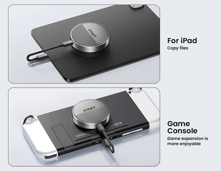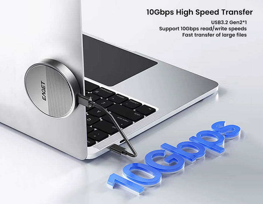 The Eaget SE880 SSD enclosure delivers blazing-fast connectivity with its 10Gbps USB 3.2 Gen 2 Type-C interface, ensuring seamless transfers for demanding tasks like backing up large files or editing media directly. Optimized for 2230 and 2242 M.2 NVMe SSDs, the SE880 is engineered to securely fit smaller, high-performance drives, removing compatibility worries for users of portable workstations and smartphones. Its durable aluminum alloy case offers improved heat dissipation and rugged protection, safeguarding your data on the move. Installing your NVMe SSD is easy with the included screwdriver, making upgrades or swaps straightforward. The enclosure supports up to 4TB SSD capacity, so users can store massive 4K videos, archives or project files without compromise. With broad device compatibility, including laptops, tablets and phones supporting USB Type-C, the SE880 is the high-speed solution for anyone needing reliable portable storage.