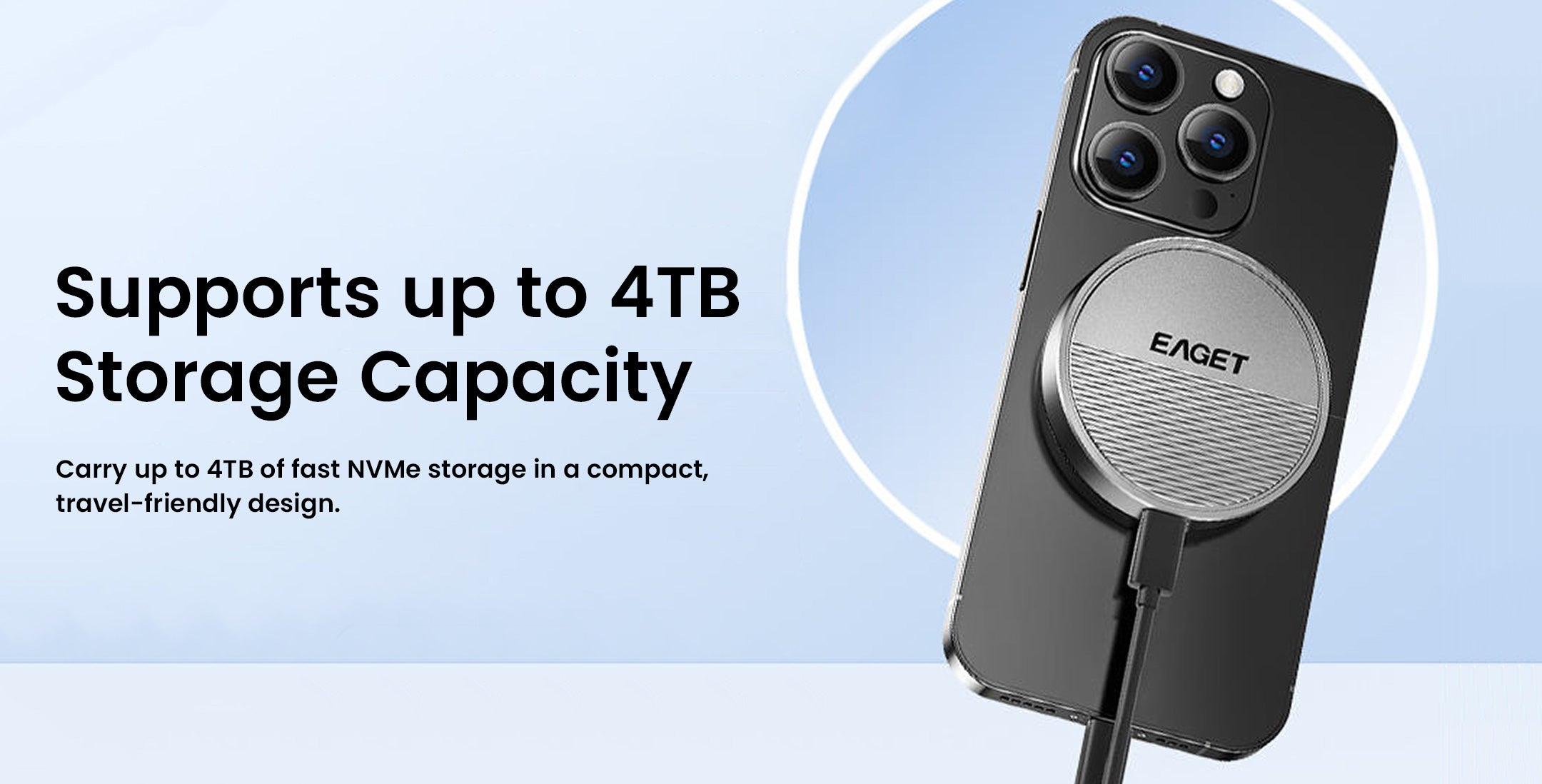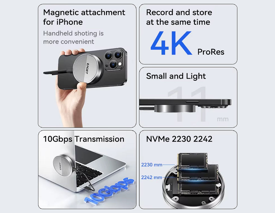 Enclosure with 512GB SSD: Comes pre-installed with a 512GB Ultra-Slim Magnetic Portable SSD supporting up to 20Gbps high-speed transfers for ready-to-use performance.