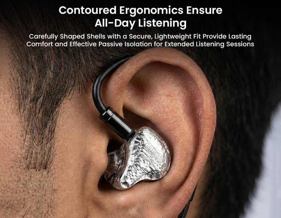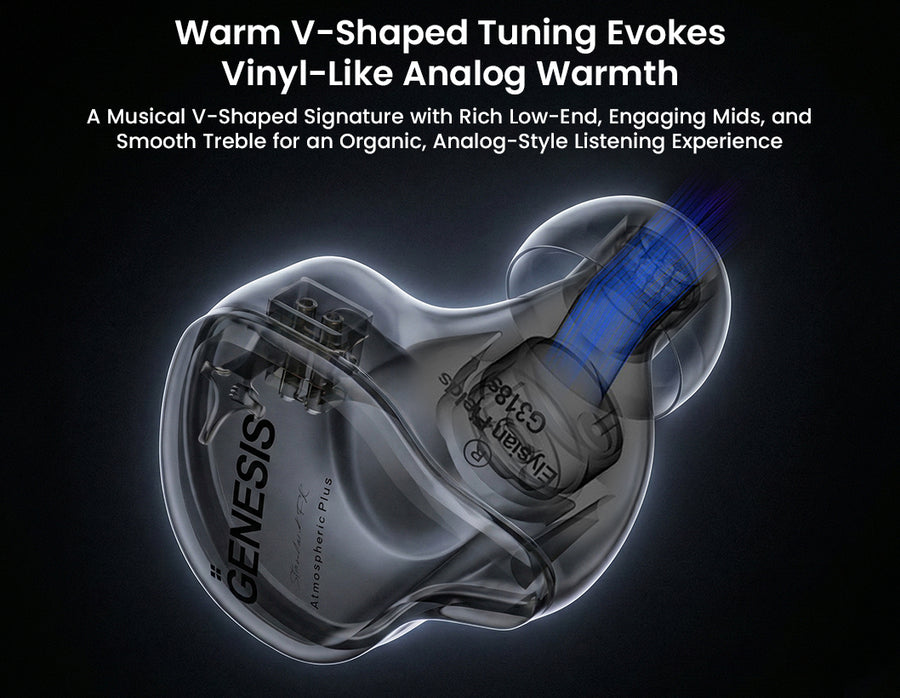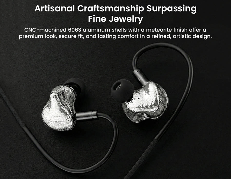 The EarAcoustic GENESIS G318s delivers captivating performance through its single 8.3mm dual-magnet dynamic driver unit. The titanium dome and diamond-coated surround diaphragm deliver lightning transients and organic timbre. Dual acoustic chambers ensure phase coherence, producing textured bass, clear mids, and smooth treble roll-off at 15kHz in a warm V-shaped signature that evokes vinyl warmth with holographic imaging. This tuning is ideal for rock, jazz and vocal-centric tracks. The 1.2m silver-plated OFC coaxial cable minimizes interference and microphonics, just to deliver vivid dynamics. The 6063 aerospace-grade CNC aluminium shells are designed with hand-polished meteorite patterns. It offers robust durability and contoured edges ensure secure fit for all day comfort. Excellent passive isolation also helps during commutes and stage performances.