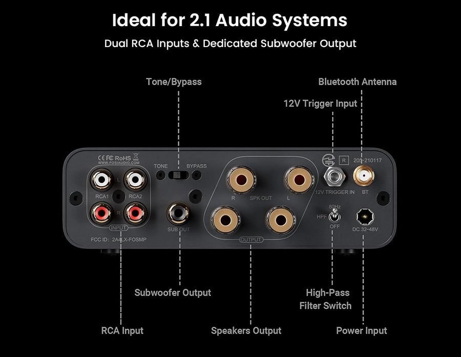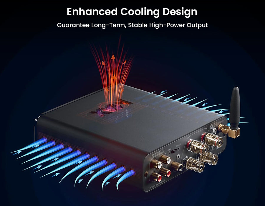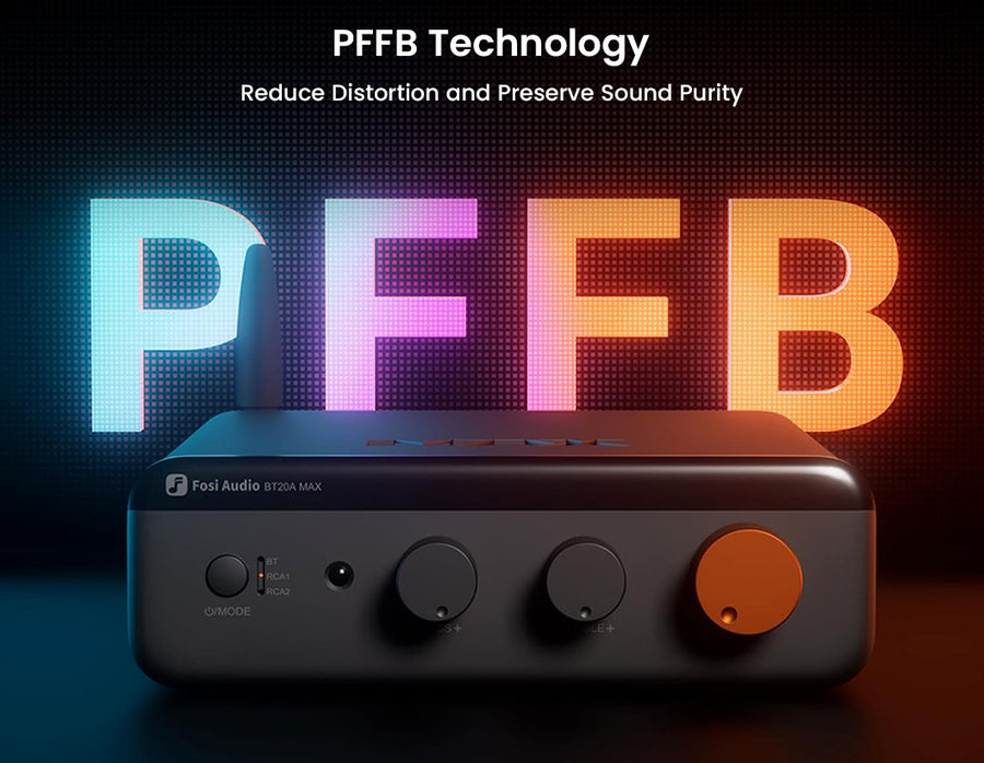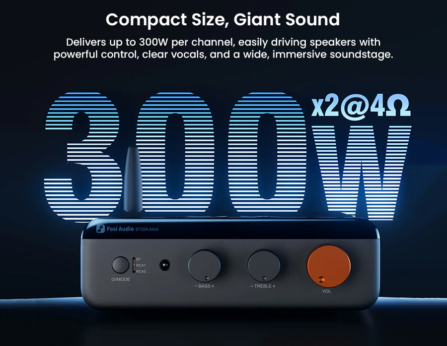 The Fosi Audio BT20A MAX is a high-performance Bluetooth 2.1 stereo power amplifier designed for powerful, clean, and versatile home audio systems. Featuring PFFB feedback technology, a dual independent power supply, and premium Japanese ELNA capacitors, it delivers ultra-low distortion ≤0.003% and a high SNR of ≥112 dB for pure and detailed sound. Powered by the TI TPA3255 amplifier chip with NE5532 op-amps, it produces up to 300W x2 peak power to effortlessly drive mainstream speakers. Bluetooth 6.0 with Qualcomm QCC3095 supports Hi-Res codecs including LDAC and aptX Lossless, while RCA inputs, subwoofer output, advanced cooling with a silent fan, remote control, tone adjustment, bypass mode, and 12V trigger make the BT20A MAX a complete and refined 2.1 audio solution.