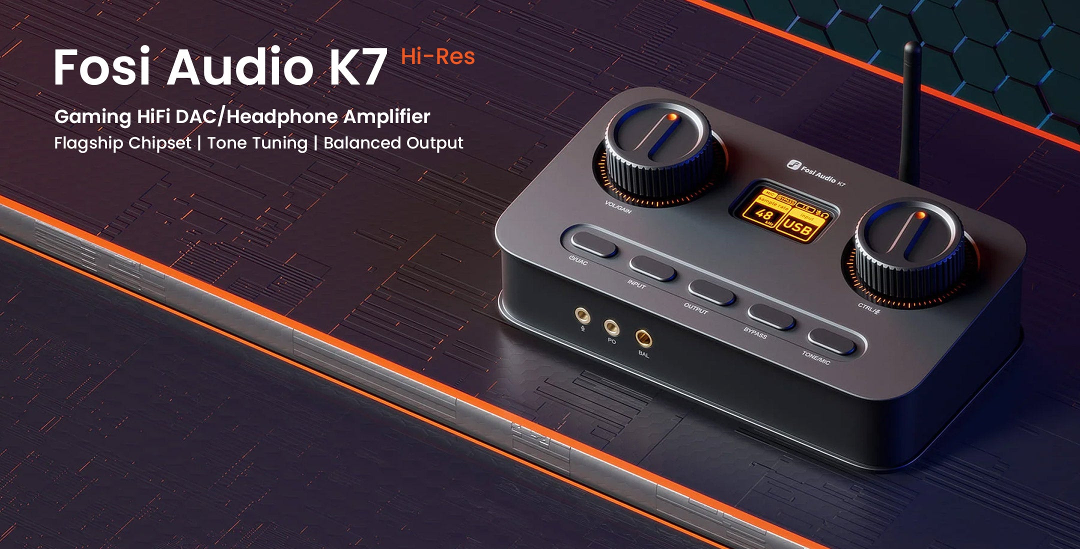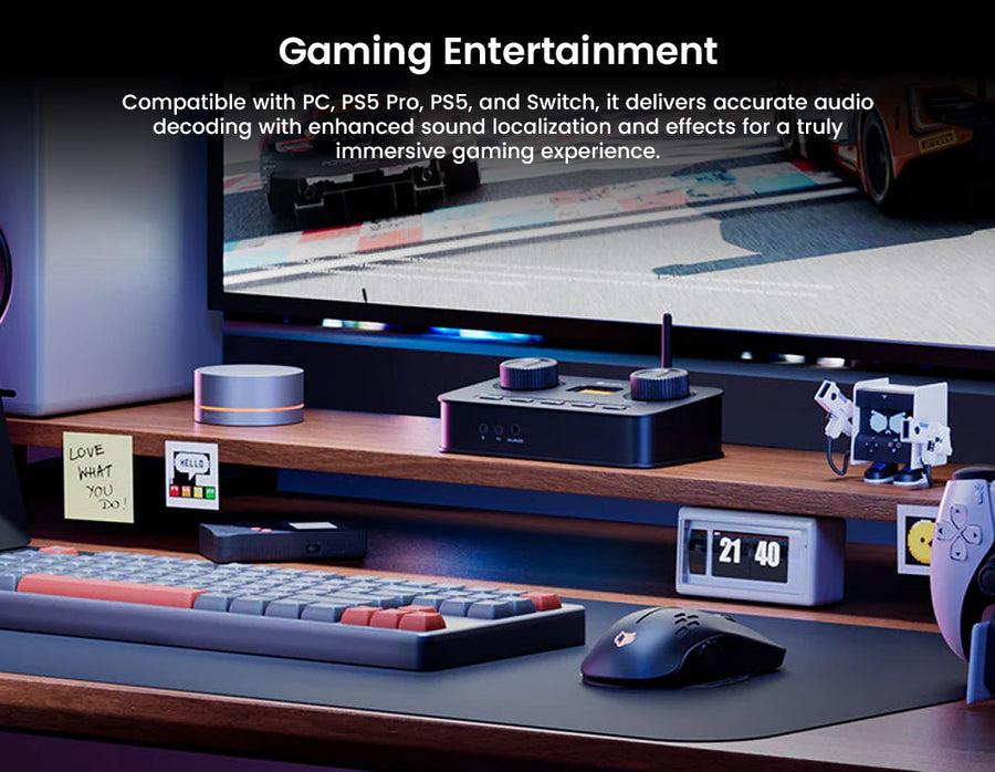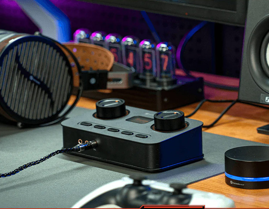 The Fosi Audio K7 is a compact, audiophile-grade DAC/headphone amplifier designed for demanding music lovers and gamers who refuse to compromise on sound quality. At the heart of the K7 lies the AKM AK4493SEQ Digital-to-Analogue Converter, supported by the high-performance XMOS XU208 USB audio interface, delivering crystal-clear, ultra-high-resolution playback for both wired and wireless sources. Its versatile input options such as USB-C, optical, coaxial, and Bluetooth 5.0 with aptX HD/LL; ensure compatibility with almost any device, while dual headphone outputs (balanced and single-ended) coupled with robust amplification empower it to drive even challenging headphones efficiently. A thoughtful addition for streamers and gamers, the K7 features a dedicated 3.5mm microphone input with built-in noise reduction, making it a true all-in-one desktop audio hub. Onboard EQ controls let you fine-tune bass and treble on the fly, and firmware updates keep the K7 future-ready.