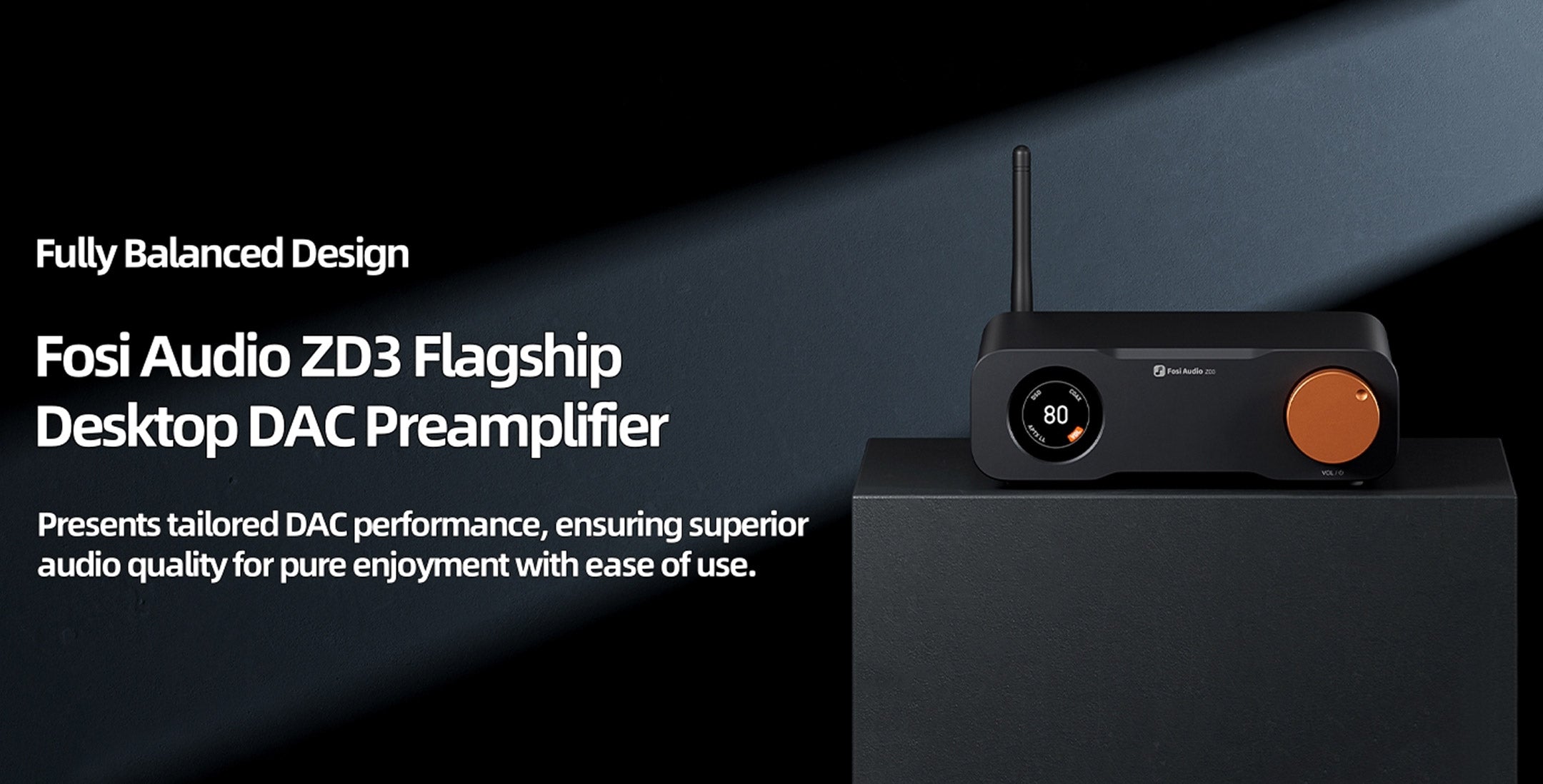 The Fosi Audio ZD3 Fully Balanced Desktop DAC is a high-performance digital-to-analog converter that delivers audiophile-grade sound quality with advanced features. Equipped with the ES9039Q2M DAC chip and XMOS XU316 USB interface, it offers pristine playback, a fully balanced design for interference-free sound, and versatile connectivity options, including Bluetooth 5.0 with aptX HD. The ZD3 also features op-amp rolling, a 1.5-inch OLED display, and a compact design that is perfect for home audio systems or desktop setups where space is limited.