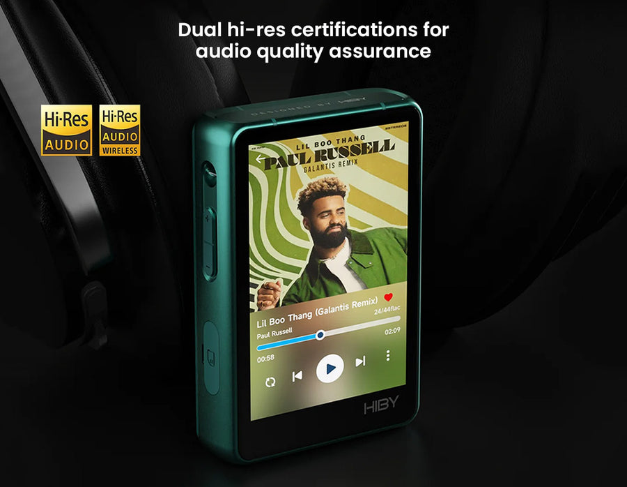 The HiBy R3 Pro II is a premium portable music player tailored for audiophiles, featuring dual CS43198 DACs and quad OPA1622 amplifiers for high-resolution audio (DSD256, PCM 384kHz/32-bit, MQA 8X) with exceptional clarity, soundstage, and power (up to 480mW balanced). Its luxurious aluminium alloy frame pairs with Ultrasuede® backplates (green/orange) or fingerprint-resistant matte glass (black/silver) for durability and style. Powered by the X1600E SoC and HiByOS, it offers smooth navigation, OTA updates, MSEB tuning, and pre-installed TIDAL/Qobuz apps. With 3.5mm/4.4mm outputs, USB-C (S/PDIF, USB Audio), Bluetooth 5.1 (UAT, LDAC, aptX), dual crystal oscillators for precise audio timing, a 4000mAh battery (21h playback), and 2TB microSD support, this Hi-Res Audio certified device delivers studio-quality sound for on-the-go listening.